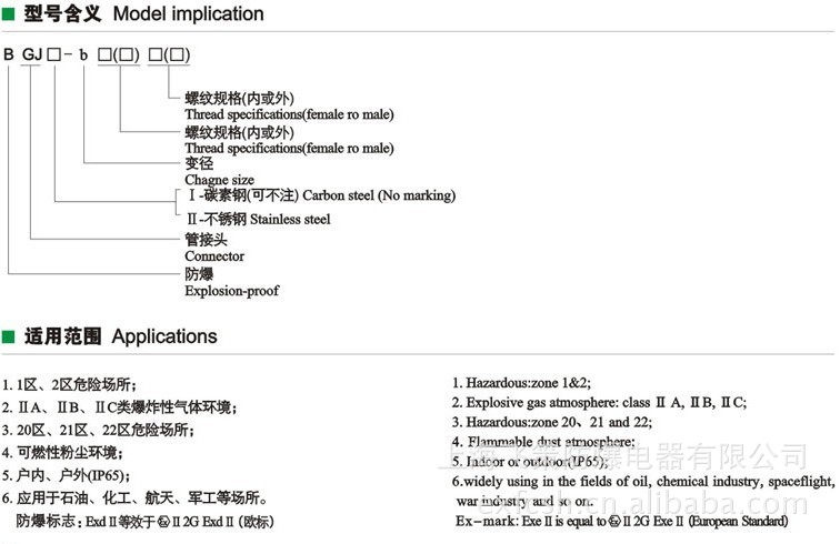BGJ-b防爆接头(变径),一内一外,双内,双外。特殊要求可特定