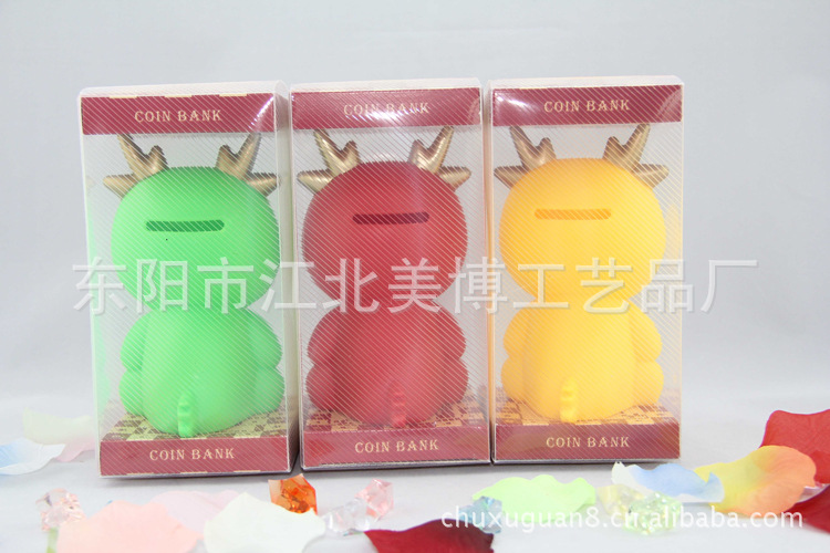 | 产品名称:小龙娃娃卡通存钱罐 产品材质:优质ABS材质 尺 寸:有大、小两个号 A、大号:12*13*19CM(箱规:60*48*68.5CM;每箱装60个) B、小号:8*9*135CM(箱规:68*51*50CM;每箱装160个) 产品包装:PVC透明盒 颜色款式:有粉,大红,紫红,黄、蓝、绿六个颜色可选择 产品特点:最新龙年上市的小娃娃储钱罐,是来自韩国最著名的ECHI的 插画师笔下的卡通形象,超级可爱又时尚,优质ABS材质,是独立的一个 储钱罐,投币口在头部,不怕摔不怕碎,手感也很好哦,还是个实用的储 钱罐