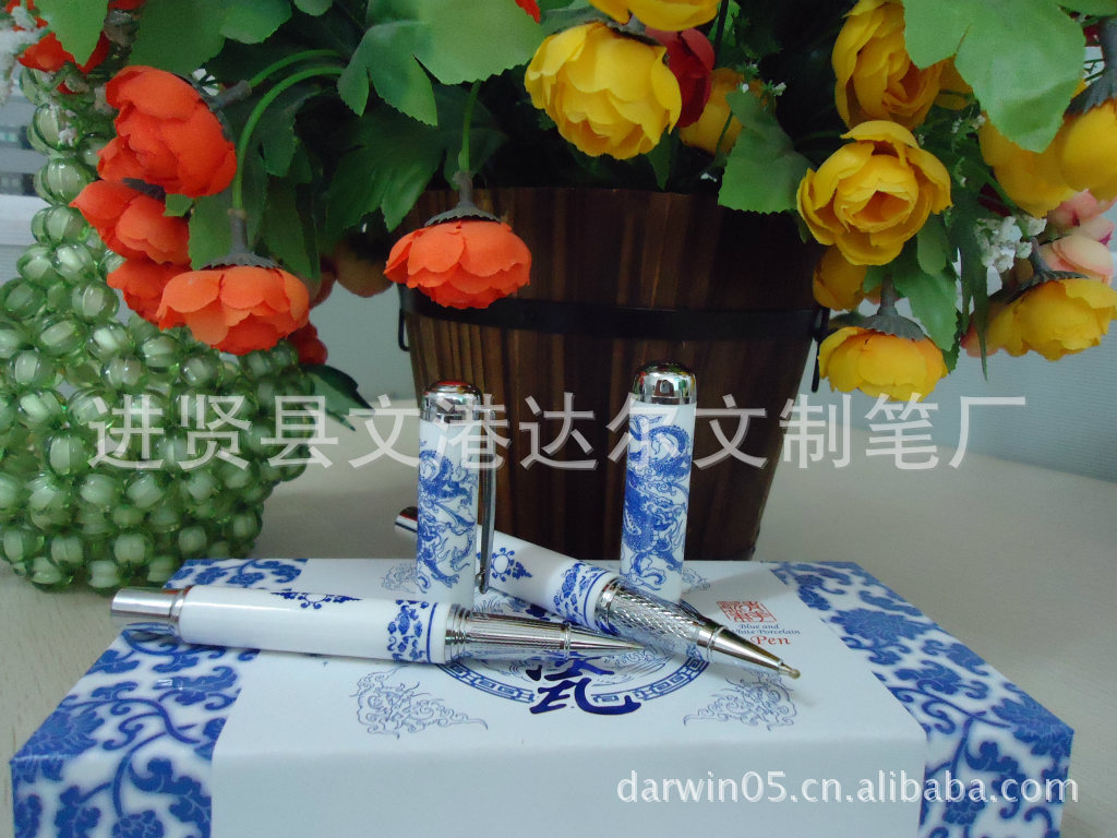 签单后都可按客户的要求制作商标和设计LOGO(丝印and激光镭射)。青花瓷笔,陶瓷脸谱笔,纯陶瓷烧制的笔。分钢笔和签字笔,“中国风”已成为世界的一种时尚“青花瓷,让您更回味历史”。笔身晶莹剔透,手感润滑,此款笔生产的难度系数极高,因为笔身的陶瓷厚度为1.3毫米,笔身和陶瓷笔杆的误差为0.05毫米,烧制温度为高温1200度,陶瓷笔管从做模,到贴花出成品时间为10道工序,出成品后经过严格筛选,一般要淘汰一半多不合格的,选出来的可谓百里挑一,由于市场上无此类产品,青花瓷笔特点是:书写流畅,还可按客户要求在笔刮上精雕字,数量多笔身上烧各种图案、LOGO、文字、广告用语等。生产产品速度快,交货及时。青花瓷笔的问世,将是礼品市场的大热门。