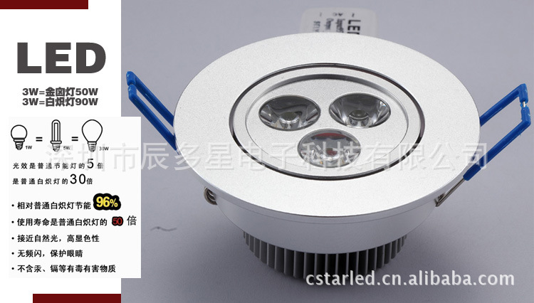 产品:LED天花灯3W,高品质花灯,采用CREE/汉半/三星/流明斯/晶元芯片灯珠,欢迎打样。