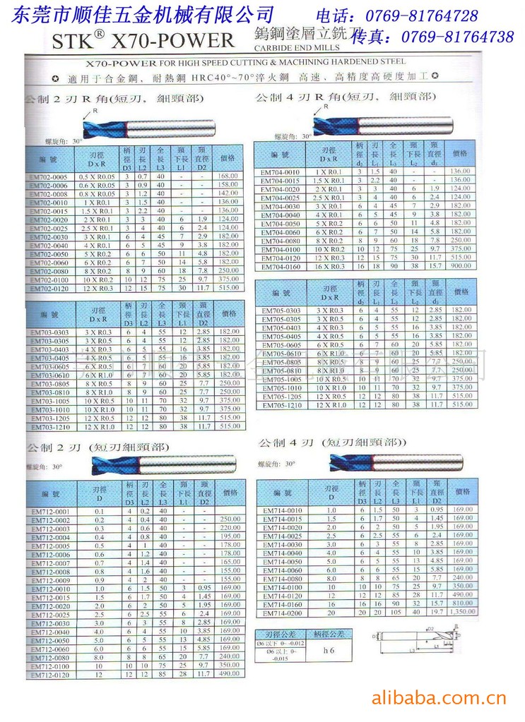 适用于高速MC,适合加工合金钢,耐热钢HRC40-70度淬火钢,高速,高精度加工,球刀R角公差+ —0.005MM
