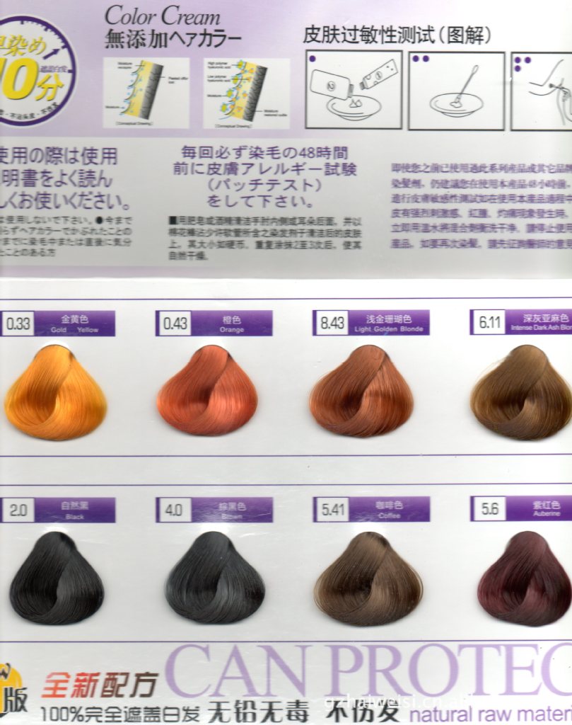 单支染膏(可选配双氧、毛板)有以下53个颜色选择: