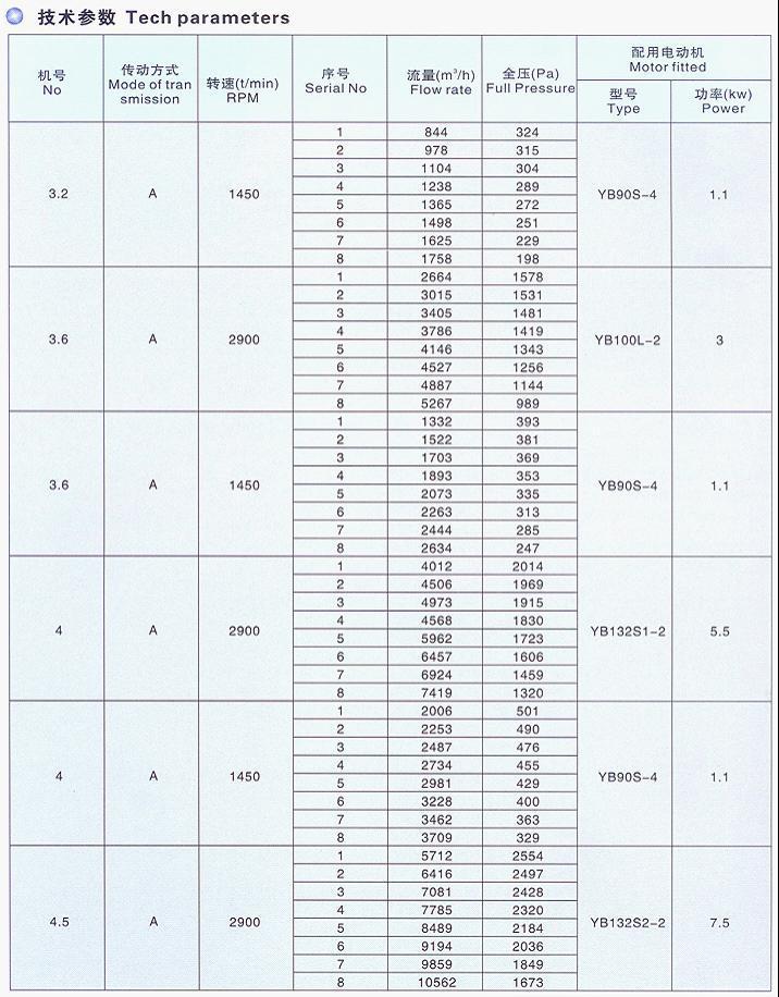 适用范围 适用于含有类别为IIA、IIB类,温度组别为:T1-T4组的可燃性性气体与空气形成的爆炸性气体混合物,且划定危险区域为1区、2区的场所,如石油、化工、船舶、军工等大型建筑物通风换气,亦可与我公司生产的防爆单元式空调机及防爆管道式除湿机配合使用。防爆标志ExdIIBT4。产品特点●采用中空机翼型叶片,运转平稳,噪声低;●外壳均用钢板制成,坚固耐用;●流量大,效率高;●风机可制成右旋和左旋两种形式。