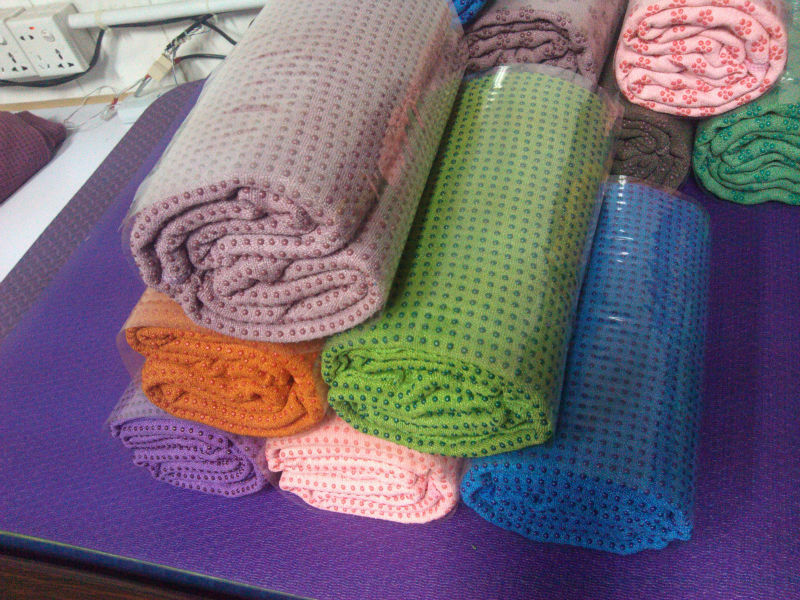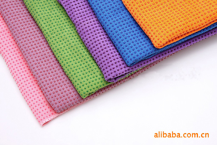 超细纤维铺巾,除了材料本身的优越性外,技术人员在铺巾的背面上赋以点状塑点止滑颗粒,改善了普通铺巾轻飘的弱点,使其具有超强止滑效果,更服帖,更防滑,因此,被当作瑜伽垫,广泛用于瑜伽练习使用。