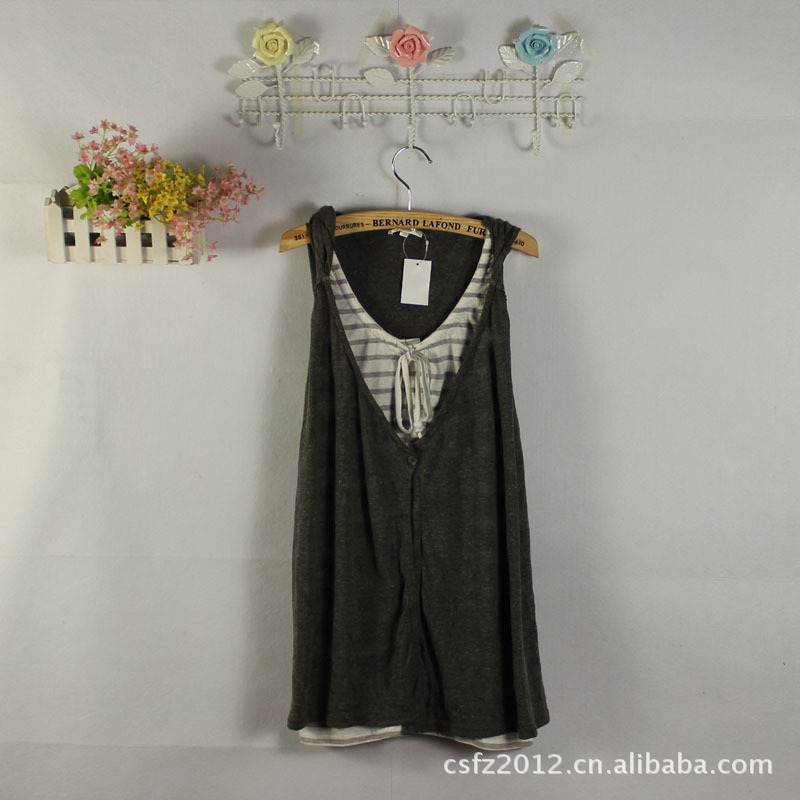 无袖衫带帽条纹(灰、黑、白)