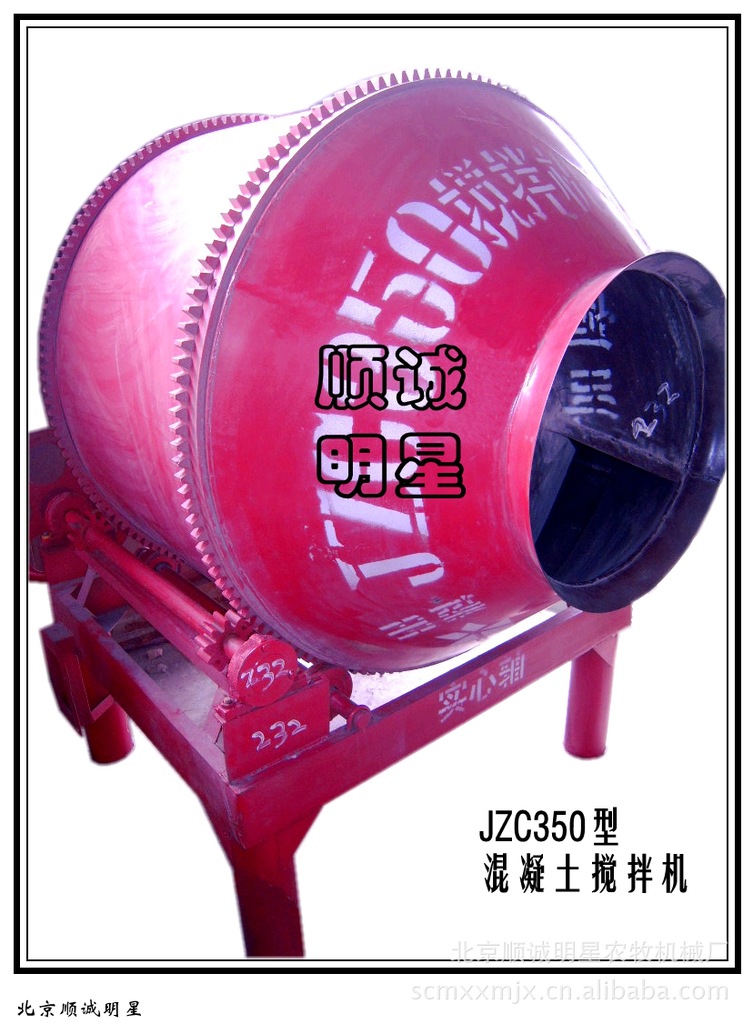 JZC350混凝土搅拌机属于双锥型拌筒正转搅拌、反转出料的自落式混凝土搅拌机,可搅拌塑性和半干硬性混凝土,本机拌筒由齿圈转动,具有传动可靠、噪音小、能耗低,结构紧凑、运转平稳、操作简便、搅拌质量好、生产率高等优点。JZC350混凝土搅拌机适用于一般建筑工地、道路、桥梁、水电等工程和中小混凝土构件厂。