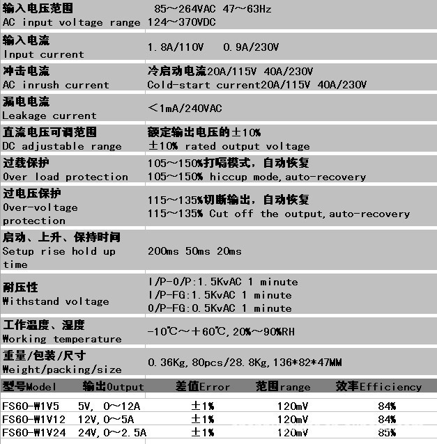 2、工作电压范围宽:输入电压可在170-264V正常工作。