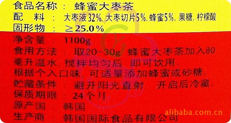 原装韩国进口 KJ蜂蜜红枣茶1100g 满千免邮