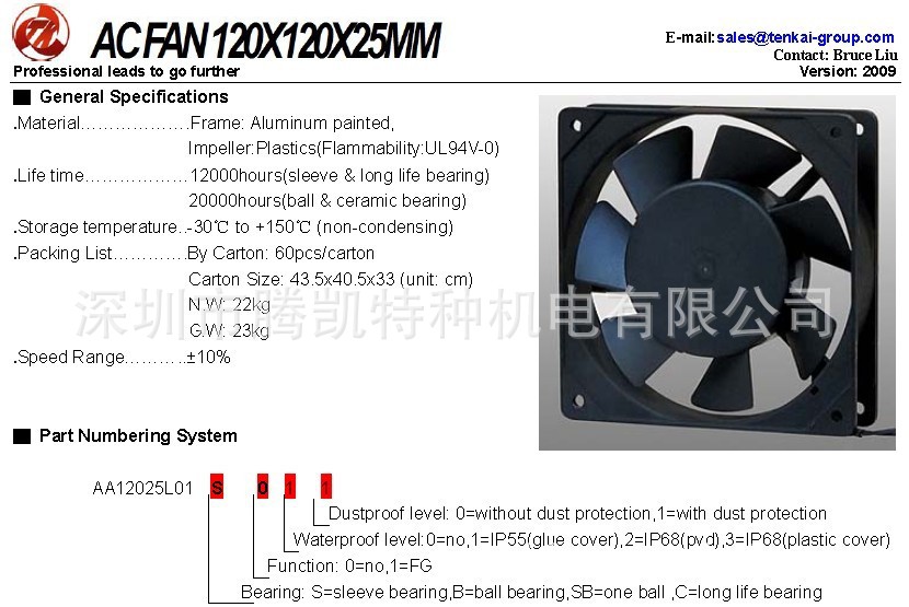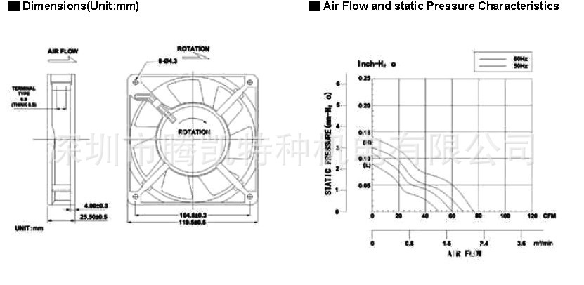 12025交流风扇特性:金属外框材质;耐高温;防腐性强;散热效果佳。