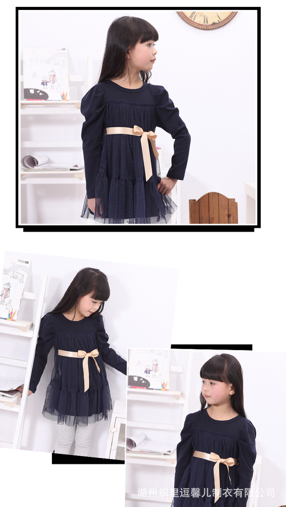 韩板时尚毛呢料高领女童连衣裙