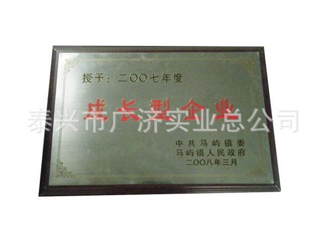 我司成立于1990年,具有丰富的经验,我司位于江苏省泰兴市,是一家专业生产标牌、商标,集设计、开发、生产、销售于一体的厂家,我们谨记服务宗旨:尽我们最大的努力为您提供最快、最优、最满意的服务! 至今我们的主要客户群体是:安徽星马汽车和河南驻马店华骏汽车等;主营产品是标牌,铭牌、铝标牌、金属标牌、腐蚀标牌、PVC标牌和不锈钢标牌。 本厂努力满足客户的需求,在最短的时间内完成出样出货,保证以最优的品质,最合理的价格为您提供服务!欢迎来电来函洽谈业务!