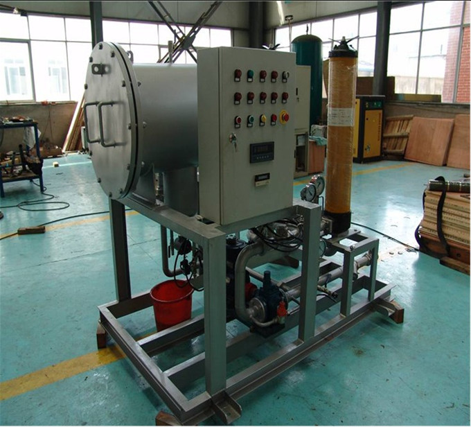 | | 安 装 | 汽轮机润滑油净化装置是一个完全独立的系统。需要处理的油经过泵,加热器送入分离桶内,进行边续地分离。经过处理的油通过机带泵送回汽轮机主油箱。完整的系统包括水封破坏报警,启动器,加热器,阀门,管道和其他必须的辅助设备。 也可以把该装置做成移动式,对多个汽轮机的油箱进行处理。 | |  |