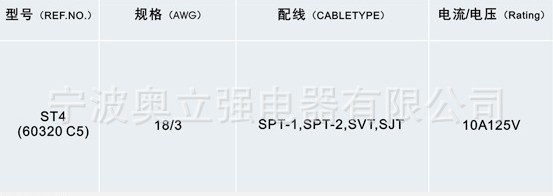 美国UL认证电源线电源尾插ST4(60320 C5)米老鼠尾插