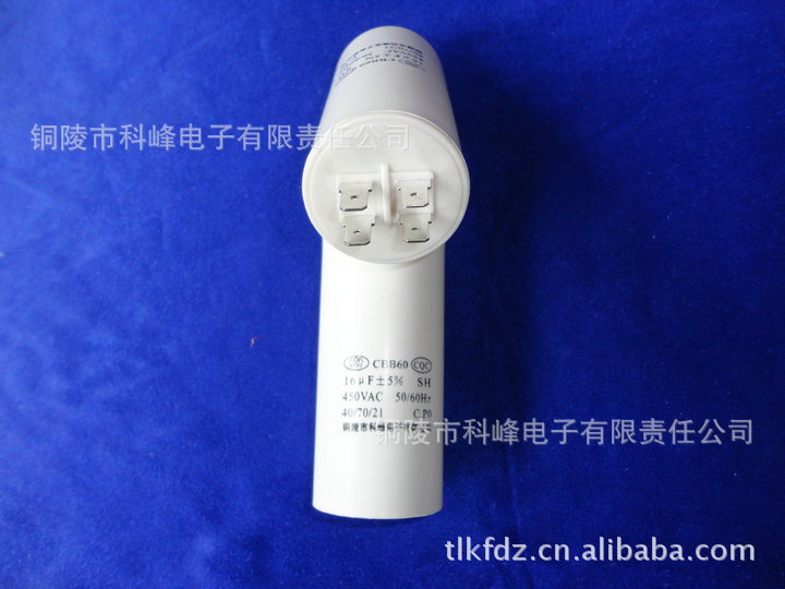 广泛用于洗衣机和电冰箱高效压缩机等频率为50Hz/60Hz的交流电源供电的单相电机起动和运行。技术规范:执行标准:GB/T3667-2005技术特性:气候类别:40/70/21或40/85/21容量偏差:±5%绝缘电阻:≥3000S(MΩ·μF)损耗角正切:tgδ≤0.002(50Hz~100Hz)使用要求:海拔:≤2000m投入时的剩余电压:不超过额定电压的10%最大允许电压:不超过1.1倍额定电压最大允许电流:不超过1.3倍额定电流