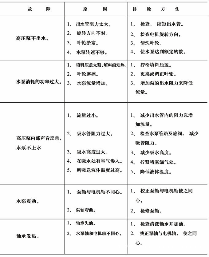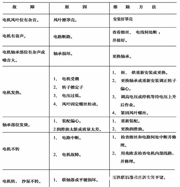 3、每班须往中段、电机座等油嘴处加黄油一次,以防泥沙进入轴承,加速轴承磨损,电机每运转一季,宜保养一次,泵体每运转360小时,应拆洗一次。