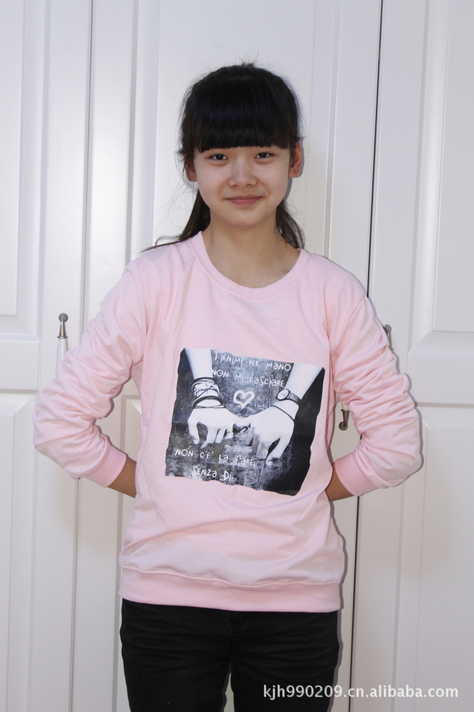 郑州供应可爱图案卫衣 圆领款式 印花款式新款 粉色纯棉卫衣