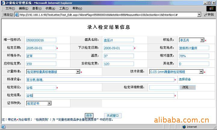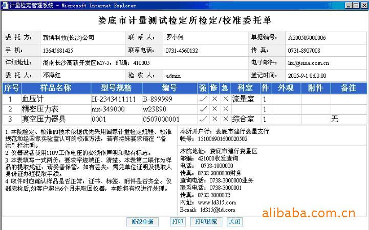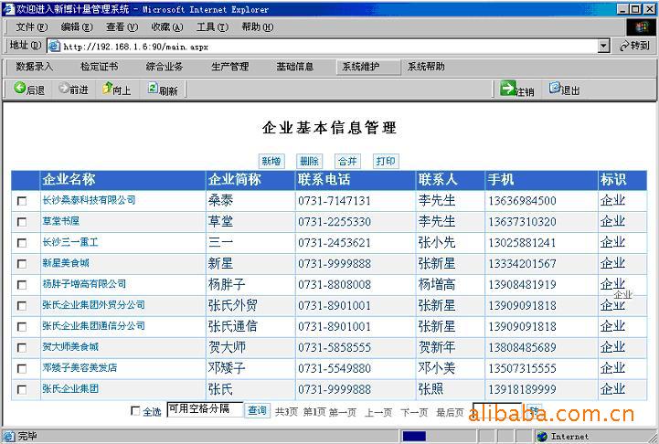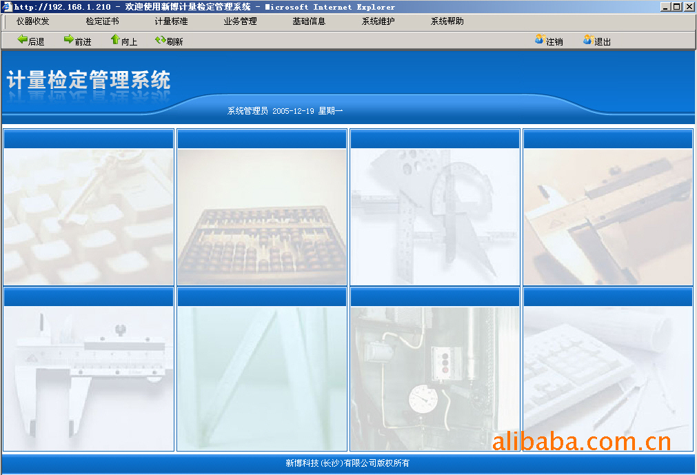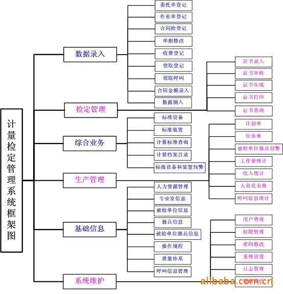 新博计量管理软件网络版系统目标: 1、全面实现计量业务信息化管理,通过使用该系统逐步提高计量检定工作的效率、增加经济效益; 2、实现并完成计量检定业务资料的输入、处理、统计和查询; 3、实现各类检测检验报告、证书、通知书等文件的打印; 4、通过该系统统计各科室、人员的工作量和收入; 5、严谨的专业资格认证管理,原则上检验人员对于不具其专业资格的检验项目不能进行检验、核验,但是可以根据实际情况进行变更,提高管理的灵活性。 新博计量管理软件网络版系统特点: 1、灵活方便的数据收集方式、交互友好的B/S模式; 2、被检单位、器具的智能管理,为系统提供准确的唯一性数据; 3、系统自带专业标准数据及部分基础数据,同时用户可根据需要自定义标准数据; 4、严格的权限和口令控制,确保系统的安全性; 5、业务流程化管理,使用户轻松的理解和使用该系统; 6、方便的系统数据导入、导出功能; 7、 适应网络环境,多用户并发处理,实现数据共享,显著提高企业管理工作效率。 新博计量管理软件网络版系统功能图: 新博计量管理软件网络版包含了可覆盖整个计量检定业务和生产管理的几大模块:数据录入、检定管理、综合业务、生产管理、基础信息、系统维护等。 新博计量管理软件网络版主要功能: 一、数据录入(仪器收发管理): 1、委托单登记:客户送样委托登记、自动下达检定任务到相应的科室,并查询客户委托信息; 3、合同单登记:针对签订合同的企业,对其进行检定后的样品信息录入; 4、收费登记:制定和变更检定收费项目和收费标准。样品检定结束后,检验人员输入各项费用,收发室打印交顾客认可后交财务付款; 5、领取登记:顾客付款完成后,领取对应的样品、证书等; 6、合同金额管理:录入和客户签订的合同金额,按照具体需求把金额分别分配到每个科室中去; 7、收发室语音短信管理:已完成检定的样品,收发室通过短信或者语音通知客户前来领取; 二、检定管理: 1、检定信息录入:通过权限控制,从所有未检定的任务中调入一个已检定样品的匹配数据,根据检验标准或业务人员设定好的检验项目录入实测数据,输入检测时所使用的检测器具名称和检验环境数据; 2、检定信息审核:对于检定的结果严格进行核验和主管验审核; 3、证书生成:审核通过后,生成证书的唯一证书编号; 4、证书打印:通过严格的权限控制打印检定证书; 5、证书查询:查询所内所有检定的历史证书。 三、综合业务管理: 1、标准设备管理:计量所内所有标准设备基本信息的维护、自检、设备状态、台帐等管理; 3、 标准设备和标准装置预警:查询所有应到期的标准设备或装置,提醒管理人员对过期设备进行自检或者送检; 4、标准设备和标准装置查询:查询所内的标准设备和标准装置的各项基本信息。 四、生产管理: 1、计划单:制定年/季度/月/任意时间段内需要强检/非强检的检定器具的基本信息,并且通过Execl的方式倒出; 2、任务单:根据具体的计划制订工作任务单供管理分配使用; 3、被检样品预警管理:企业的被检器具在设置时间内通过短信、语音方式主动通知客户需检定的样品; 4、工作量和收入统计:分人员/科室统计检定的工作量/收入; 5、 计量所检定人员管理:基本的人员信息和可检定器具种类的信息管理。 五、基础信息管理: 1、专业室管理:维护专业室的基本信息、专业室可管理器具的分类等; 2、器具管理:国家标准的所有器具信息; 3、被检单位信息管理:所有的被检企业的信息管理、相同企业的合并等,可以通过Execl的方式倒出; 4、被检单位器具管理:所有的被检企业的基本器具信息管理,可以通过Execl的方式倒出; 5、规程规范:所有规程、规范的信息维护; 6、质量体系:程序文件、作业指导书、质量管理手册。