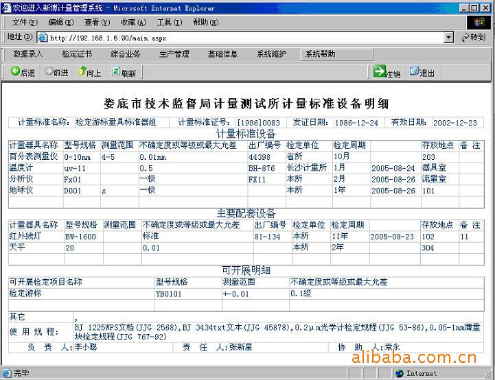 新博计量管理软件网络版将计量业务流程和数据采用计算机管理,提高了计量日常检测、检验业务的效率性和准确性,可实现各类数据的长期保存、随时查询和精确汇总,使计量检定业务达到无纸化、系统化、信息化的办公要求。