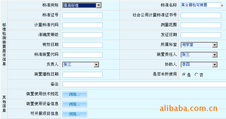 2、标准装置管理:计量标准装置信息的管理,包括标准装置的基本信息、存放地点、自检等信息管理;