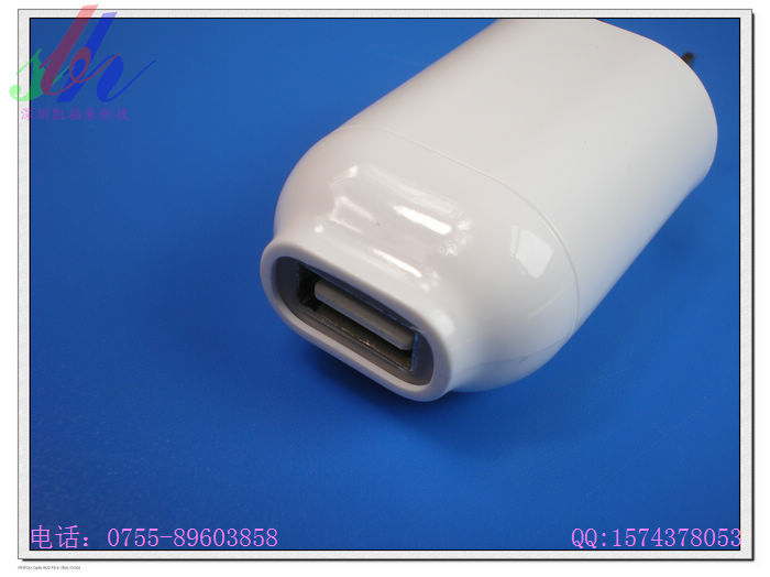 2、把USB旅充插入AC100-220V, 此时LED点亮发出蓝光。