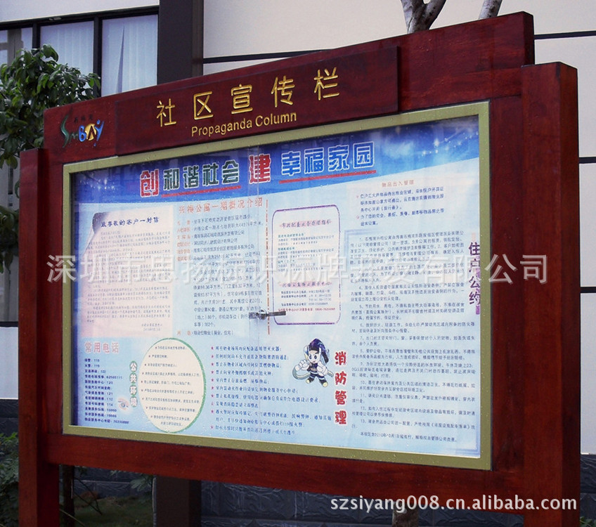 产品名称:宣传栏尺寸:2800*3200mm高材料:菠萝格实木工艺:雕刻填油使用场地:户外安装说明:打螺丝固定于地面,也可以泥地面混凝土固定可延展内容:视情况而定包装:为保证标识安全送达至客户,我们采取三道包装法,第一道采取保护膜包装标识牌,可减少刮痕;第二道采取珍珠绵包装,可减轻运输过程中的震动,第三道采取纸皮外包装,并用胶布粘贴牢固,保证产品的安全性。