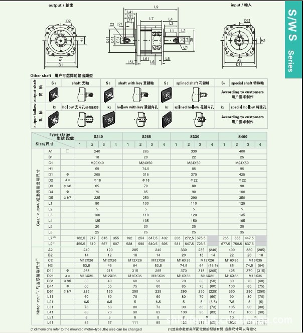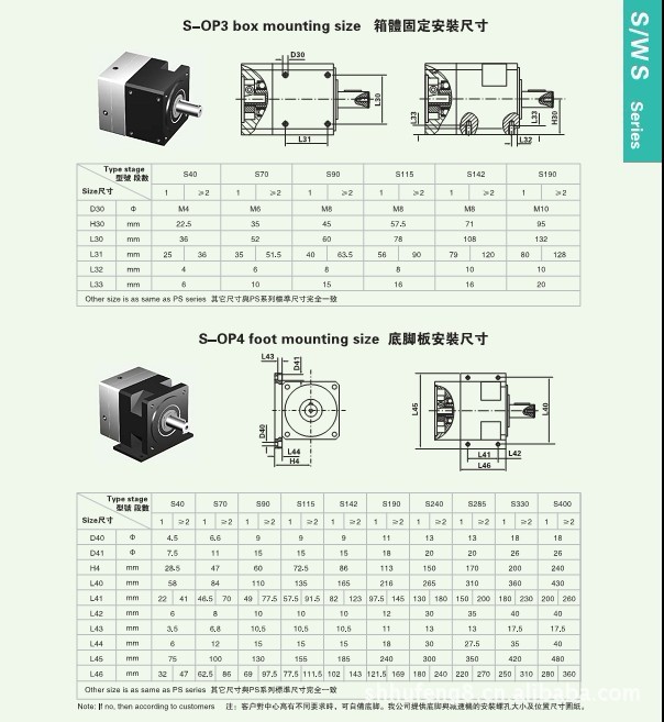 S/WS40 S/WS70 S/WS90 S/WS115 S/WS142 S/WS190 PS/WS240 S/WS285 S/WS330 S/WS400
