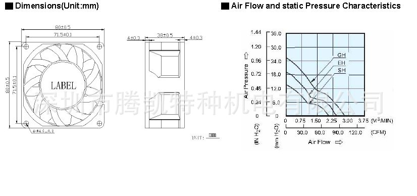 半圆形8038增压风扇产品特点:出风面特殊设计;风压大;耐高温;高风量;低功耗;散热效果极好。