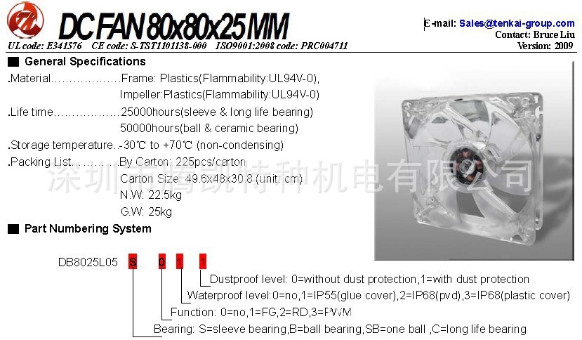 8025透明散热风扇参数规格: