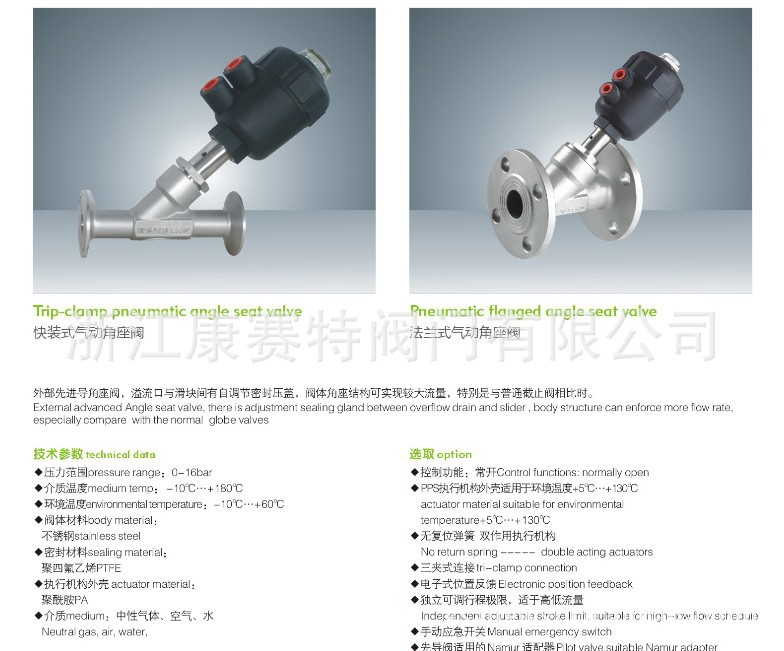 法兰式气动角座阀