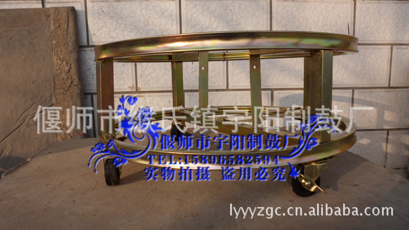 事的叫“汾(音)鼓”,据《说文》的解释,这是一种长八尺,鼓面四尺,两面蒙革的大鼓。此外,路鼓、晋鼓、等也用于军旅,这些鼓以后发展为各种规格的战鼓,在军事上得到普遍地运用。 在远古时期,鼓被尊奉为通天的神器,主要是作为祭祀的器具。在狩猎征战活动中,鼓都被广泛地应用。鼓作为乐器是从周代开始。周代有八音,鼓是群音的首领,鼓的文化内涵博大而精深,雄壮的鼓声紧紧伴随着人类,远古的蛮荒一步步走向文明。俗可以是民间的欢庆锣鼓,雅可以进入庙堂祭祀和宫廷宴集。从原始的陶鼓、土鼓、皮鼓、铜鼓,一直发展到种类繁多的现代鼓,鼓是最为人们喜爱和广泛应用的乐器之一。有观点认为,最早的鼓应该是由远古的先民使用的,陶罐、陶盆等生活用具所演化而来,出土的陶鼓证明了,早在距今七千年前的新石器时代就已经开始有了陶鼓的制造。陶鼓又称土鼓,是用陶土烧制成鼓框,再蒙上动物的皮革做成的。在我国以瓦为框制造陶鼓的传统,沿袭了很久腰鼓是由西域传入中国,在唐代广为流行,唐代的腰鼓除了木质材料以外,也有以陶瓷作为鼓材的。 鼓是中国常用的打击乐器,鼓的出现比较早,从目前发现的出土文物来看,可以确定鼓大约有3000年的历史。在古代,鼓不仅用于祭祀、乐舞,它还用于打击敌人、驱除猛兽,并且是报时、报警的工具。随着社会的发展,鼓的应用范围更加广泛,民族乐队、各种戏剧、曲艺、歌舞、赛船舞狮、喜庆集会、劳动竞赛等都离不开鼓类乐器。鼓的结构比较简单,是由鼓皮和鼓身两部分组成。鼓皮是鼓的发音体,通常是用动物的皮革蒙在鼓框上,经过敲击或拍打使之振动而发声的。中国鼓类乐器的品种非常多,其中有腰鼓、大鼓、同鼓、花盆鼓等。 腰鼓的鼓身中间粗,两端细,呈筒状,两面蒙以牛皮或骡马皮,在鼓身一侧有两个鼓环,环上系绳子,用于鼓的固定。腰鼓有大小四种规格,但没有固定音高,发音清脆,常用于民间秧歌歌舞伴奏,它既是舞蹈音乐的伴奏乐器,又是舞蹈者的道具。表演时,将腰鼓斜挂在腰侧,双手各执鼓棰击奏。