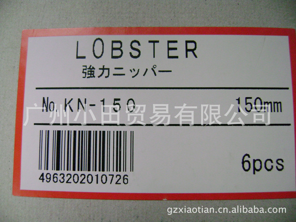 广州小田供应虾牌(LOBSTER)斜嘴钳KN-150