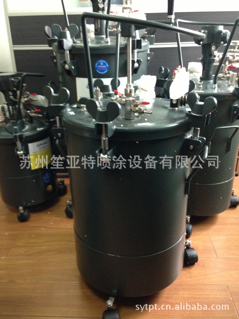 组成: 压力桶是由气动马达,空气调节器,安全阀,泄气阀,出料口,内桶及四只活动轮所组成。此气动搅拌型压力桶的气动马达可自行搅拌,使桶内的涂料保持均匀。在喷涂作业中,不会因涂料沉淀而产生色差。该产品不仅仅只局限于涂料,其它喷涂材料也可使用。