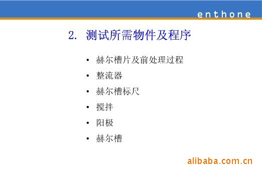 (1)铜电镀液:在指定的赫尔槽中加入267ml铜的电镀液,插上气泵使溶液搅拌均匀.去除赫尔槽实验片上的薄膜,用水冲洗,然后放入10%的硫酸中浸泡30秒,取出,再用水冲洗,然后放入赫尔槽中.连接赫尔槽电源,用1A的电流持续通电10分钟.电镀结束后在把赫尔槽实验片取出,用水冲洗,然后放入0.1%的BT-120中浸泡30秒,取出用气吹干.完成实验后,保存结果,