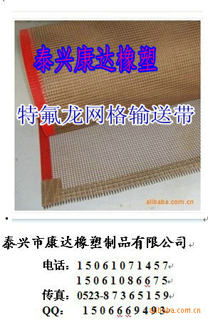 特氟龙网格输送带是以悬浮聚四氟乙烯(俗称塑料王)乳液为原料,浸渍高性能玻纤网布而成。是一种高性能,多用途的复合材料新产品。因其优异的各项性能,故被广泛应用在造纸、食品、环保、印染、服装、化工、玻璃、医药、电子、绝缘、砂轮切片、机械等领域。 特氟龙网格输送带主要性能特点 :