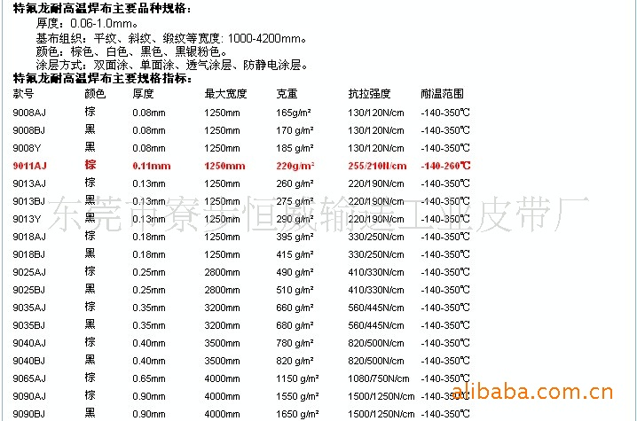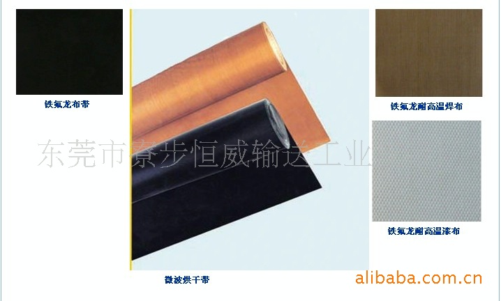 5.广泛应用于带式压烫粘合机械配套。各种是食品烘焙、冷冻食品解冻(米饭、年糕、糖果等),烟草及茶叶烘培加工流水线,制药机械微波烘干设备,热收缩包装机械,塑胶地毯设备,塑钢门窗制造业用玻璃漆布,木材加工工业铺装带。各种食品电子元件焊接输送机械配套。工业药品,橡塑胶片、电器零件热处理品耐热及非粘着的特殊条件运输带。汽车零件的防锈粘结剂涂履运输、带有酸、碱、及其他腐蚀物品的运输带。