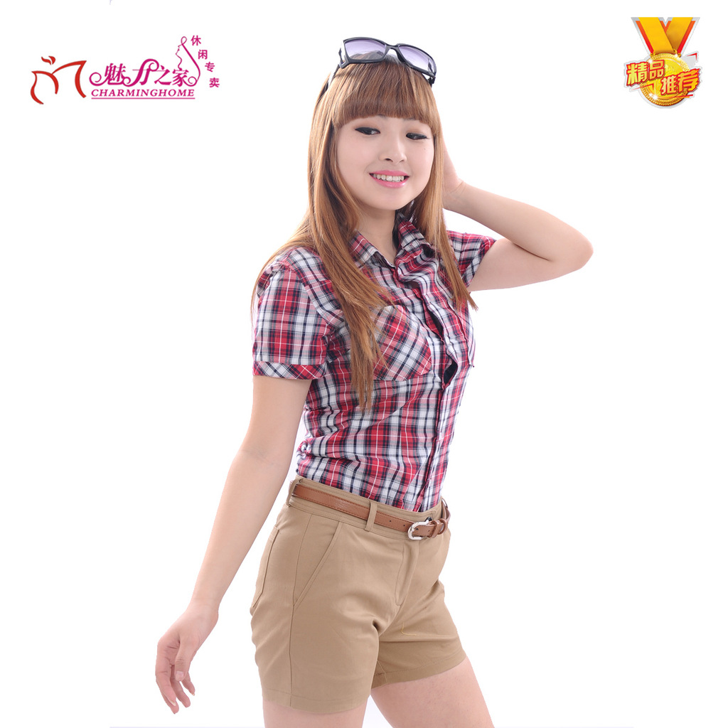 热款夏装韩版格子衬衫 衬衫衬衣 韩版休闲衬衫
