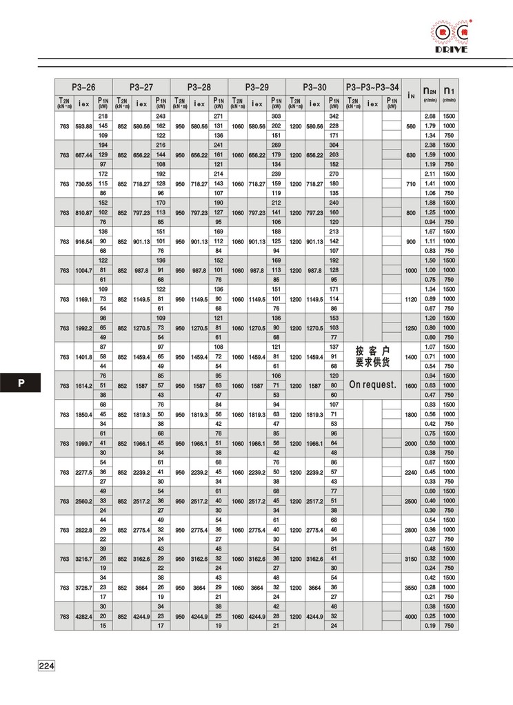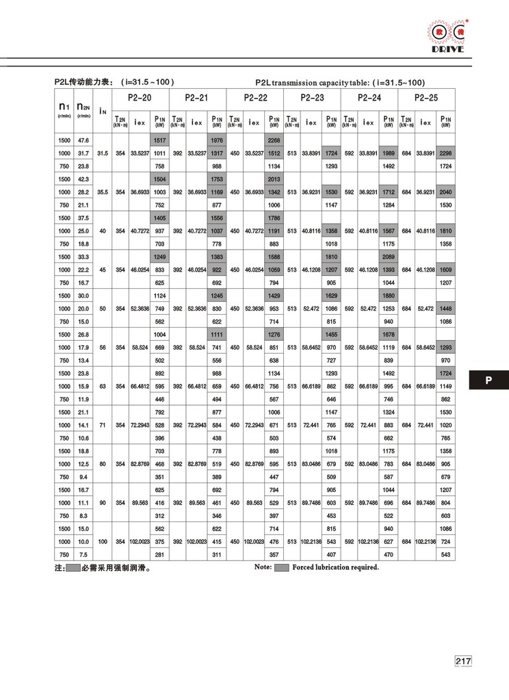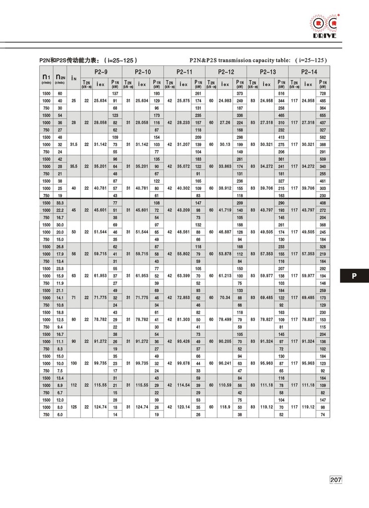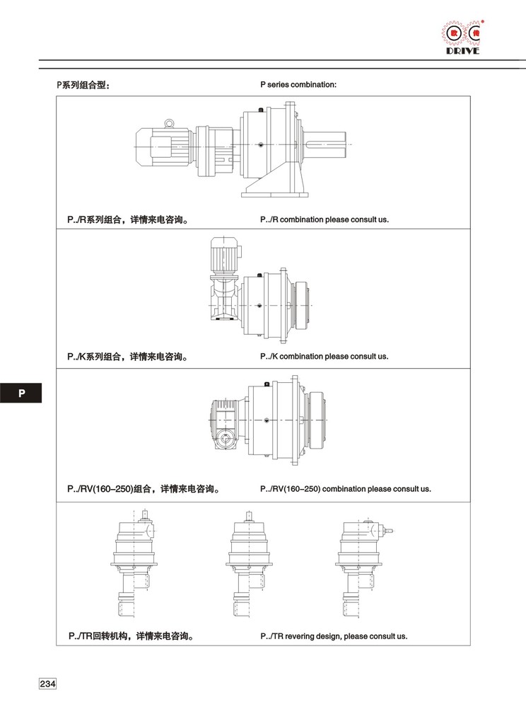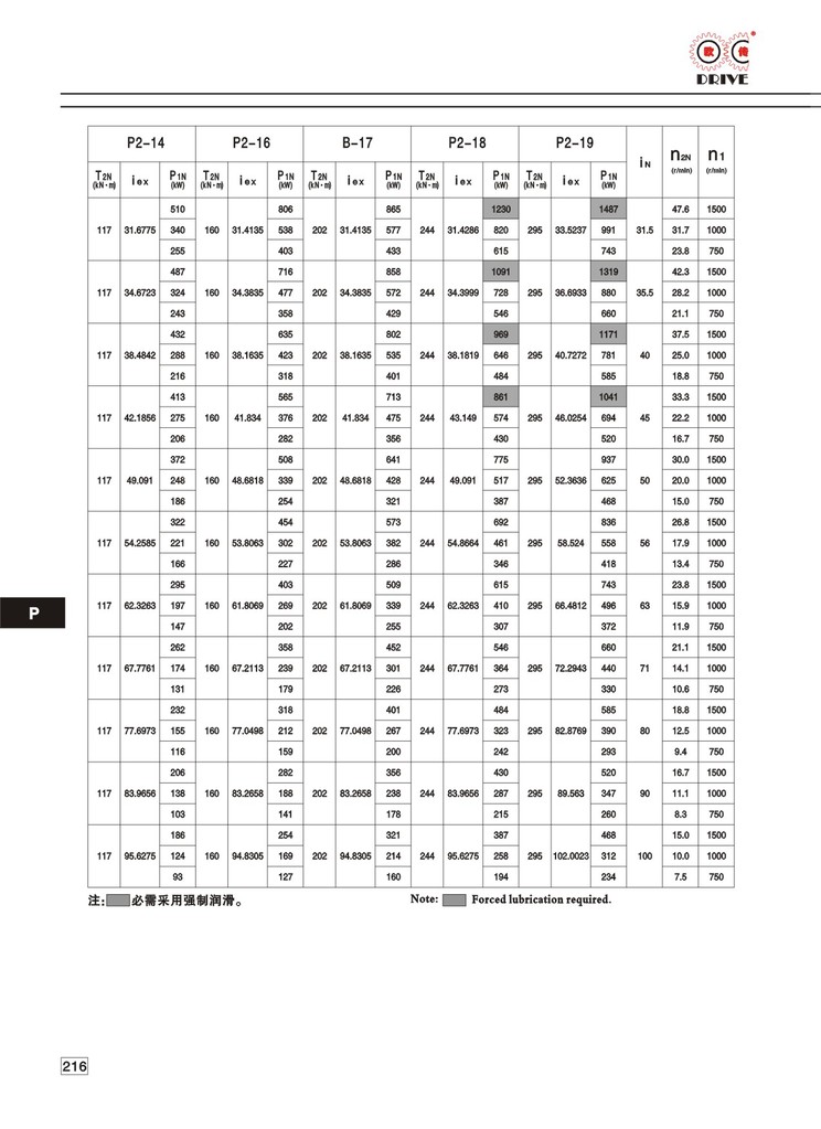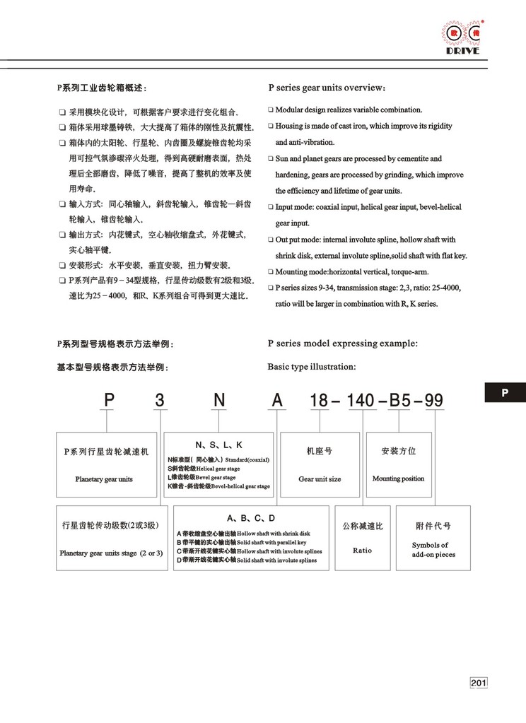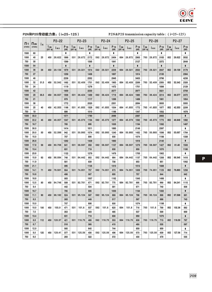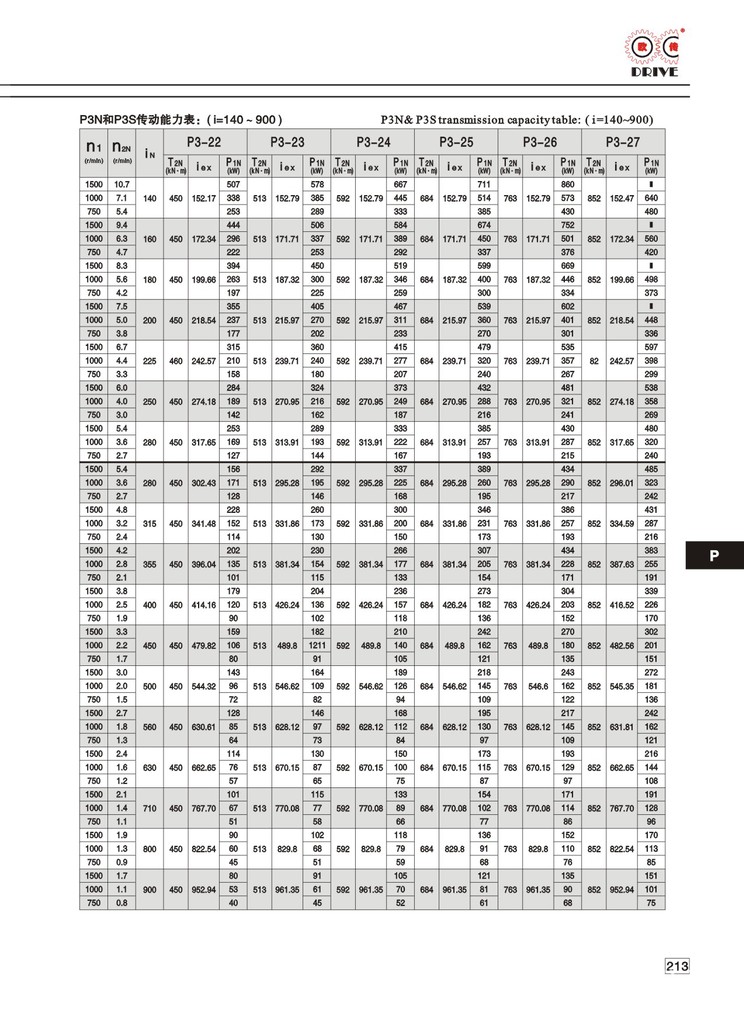 P系列重载行星齿轮减速机P系列行星齿轮减速机采用模块化设计,可根据客户要求进行变化组合,减速机采用渐开线行星齿轮传动,合理利用内、外啮合、功率分流,箱体采用球墨铸铁,大大提高了箱体的钢性及抗震性,齿轮均采用渗碳淬火处理,得到高硬耐磨表面,齿轮热处理后全部磨齿,降低了噪音,提高了整机的效率和使用寿命。因此具有重量轻、体积小、传动比范围大、效率高、运转平稳、噪声低适应性强等特点。 减速机广泛应用于冶金、矿山、起重运输、电力、能源、建筑建材、轻工、交通等工业部门。减 速 比:25~4000r/min(与RX、R、K系列组合可达到更大速比)输出转矩:高至2600000Nm电机功率:0.4-12934kW安装形式:底脚安装、法兰安装、 扭力臂安装。出轴方式:实心轴渐开线花键实心轴渐开线花键空心轴带胀紧盘空心轴