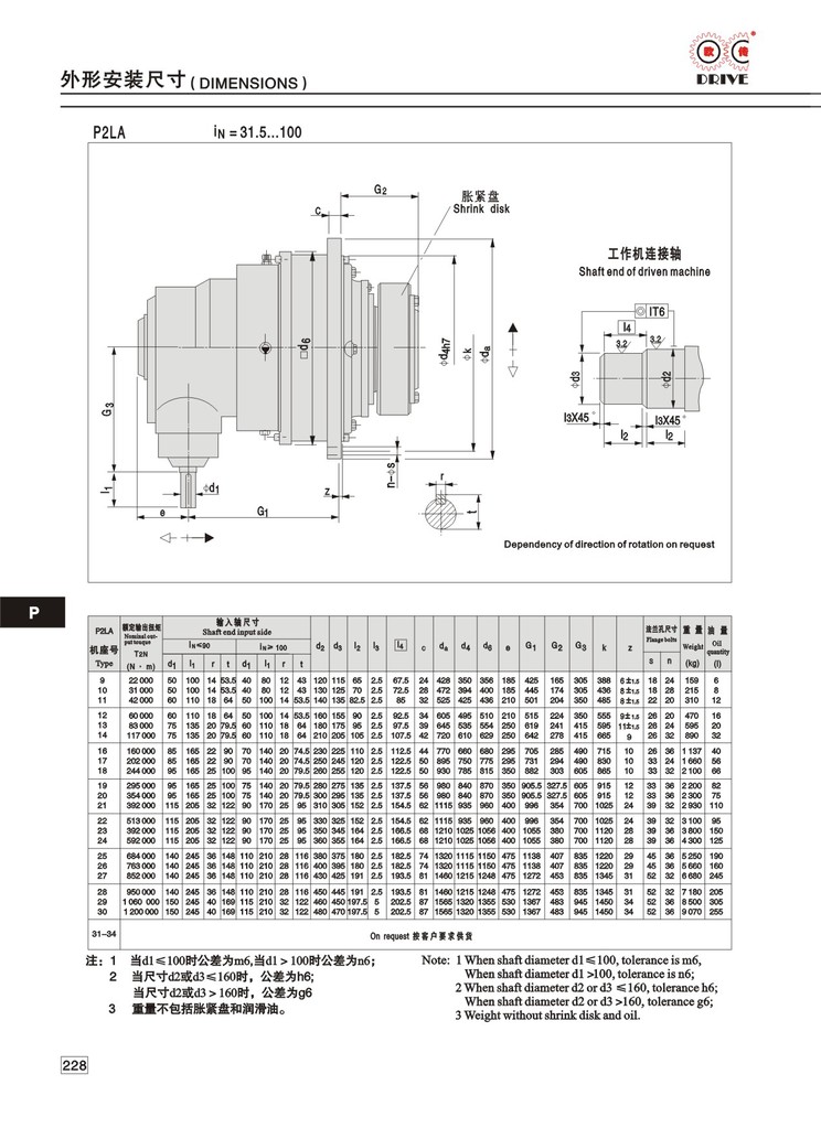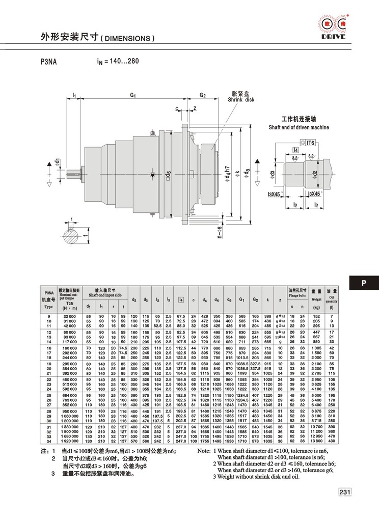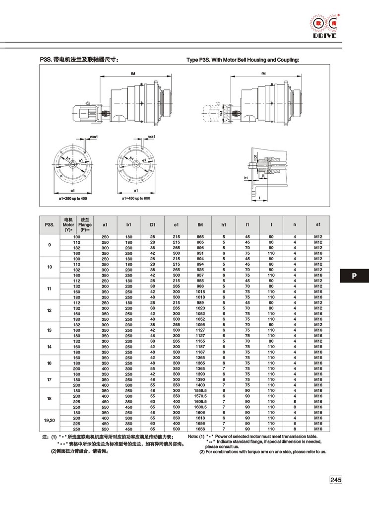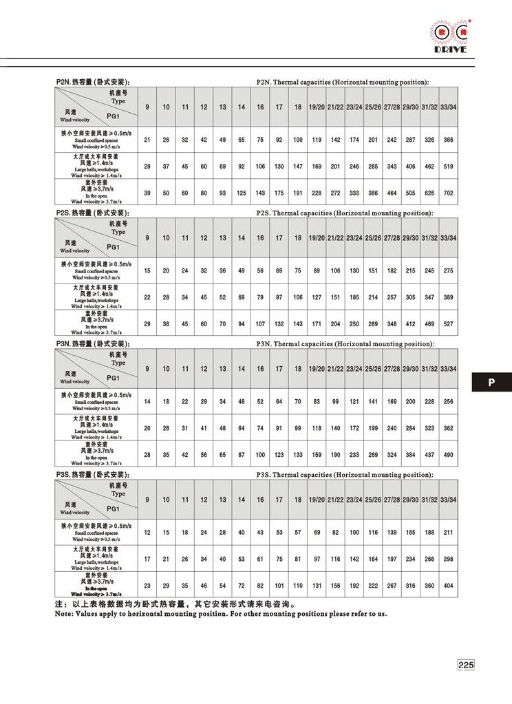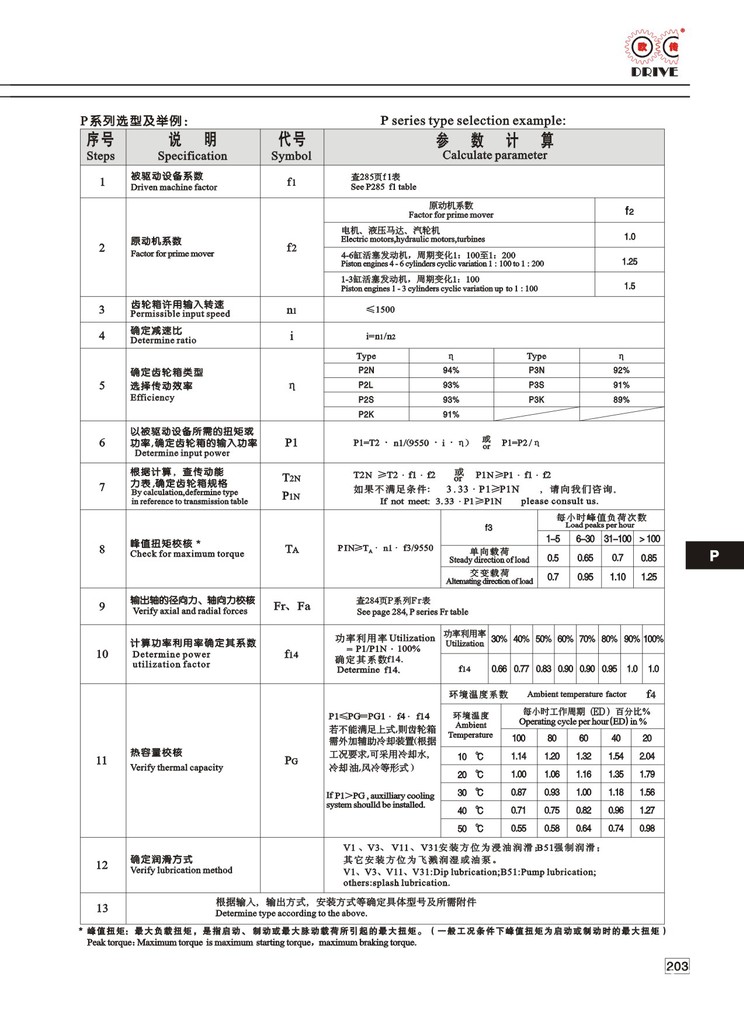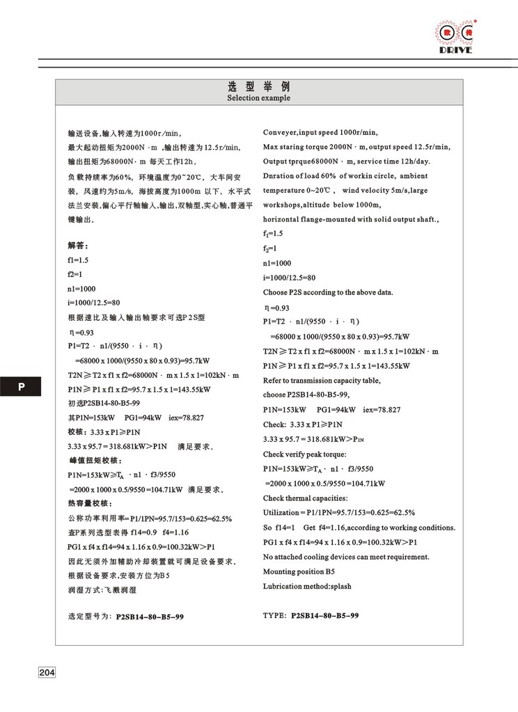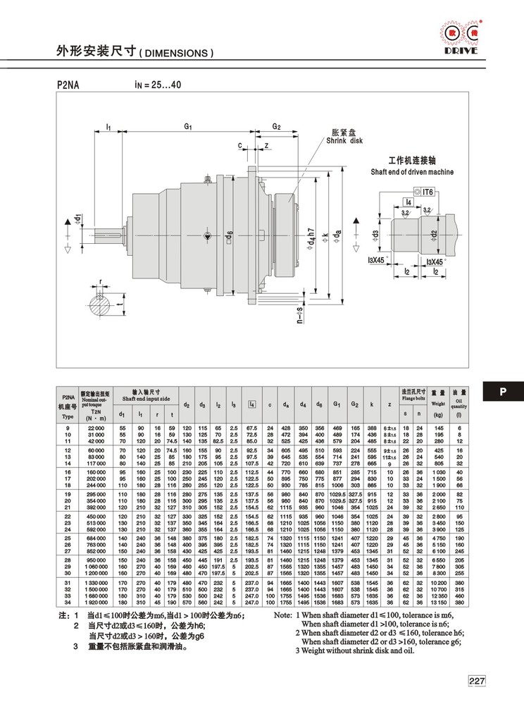 P系列重载行星齿轮减速机P系列行星齿轮减速机采用模块化设计,可根据客户要求进行变化组合,减速机采用渐开线行星齿轮传动,合理利用内、外啮合、功率分流,箱体采用球墨铸铁,大大提高了箱体的钢性及抗震性,齿轮均采用渗碳淬火处理,得到高硬耐磨表面,齿轮热处理后全部磨齿,降低了噪音,提高了整机的效率和使用寿命。因此具有重量轻、体积小、传动比范围大、效率高、运转平稳、噪声低适应性强等特点。 减速机广泛应用于冶金、矿山、起重运输、电力、能源、建筑建材、轻工、交通等工业部门。减 速 比:25~4000r/min(与RX、R、K系列组合可达到更大速比)输出转矩:高至2600000Nm电机功率:0.4-12934kW安装形式:底脚安装、法兰安装、 扭力臂安装。出轴方式:实心轴渐开线花键实心轴渐开线花键空心轴带胀紧盘空心轴