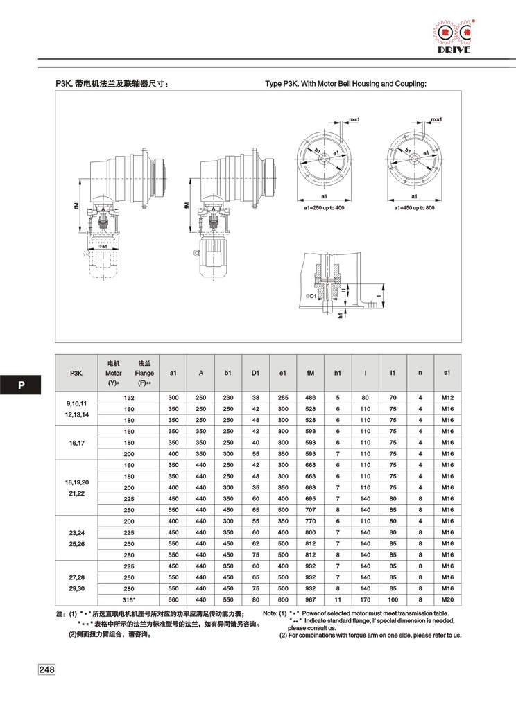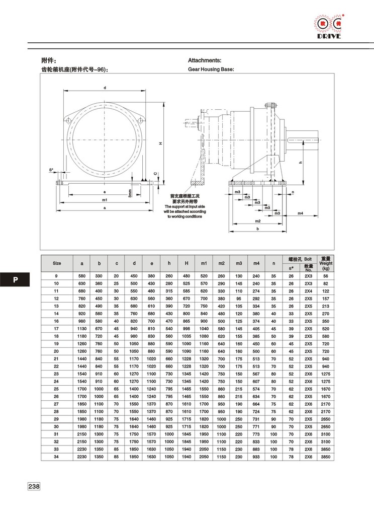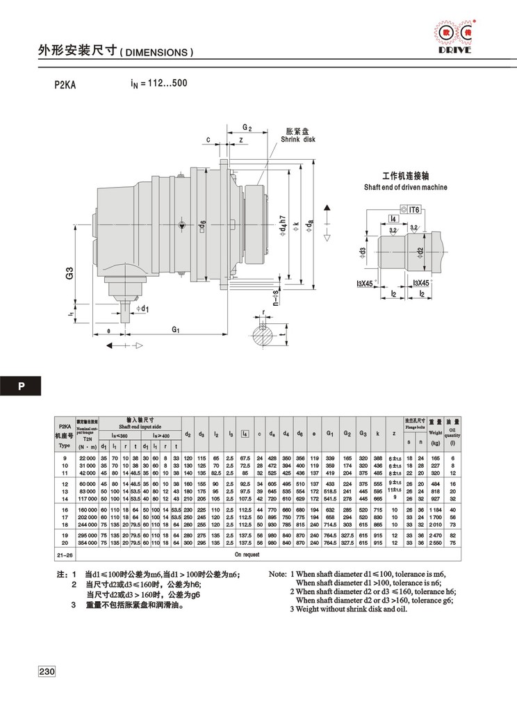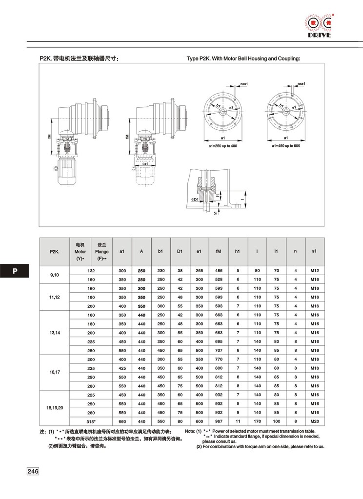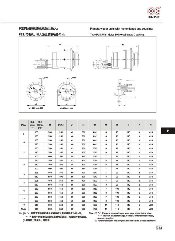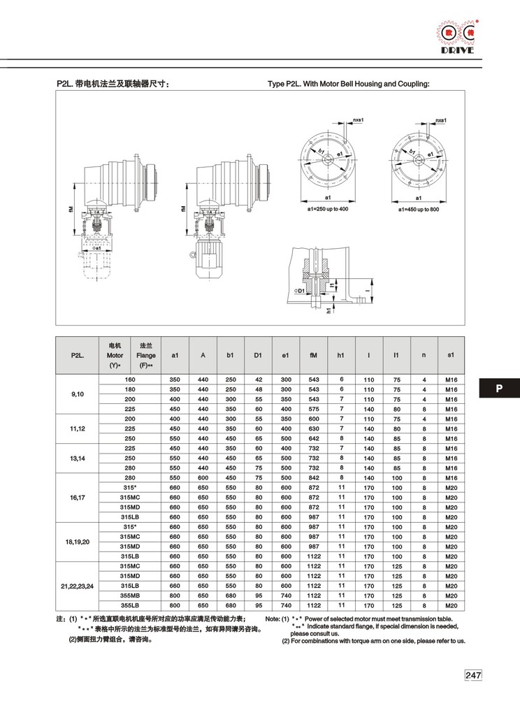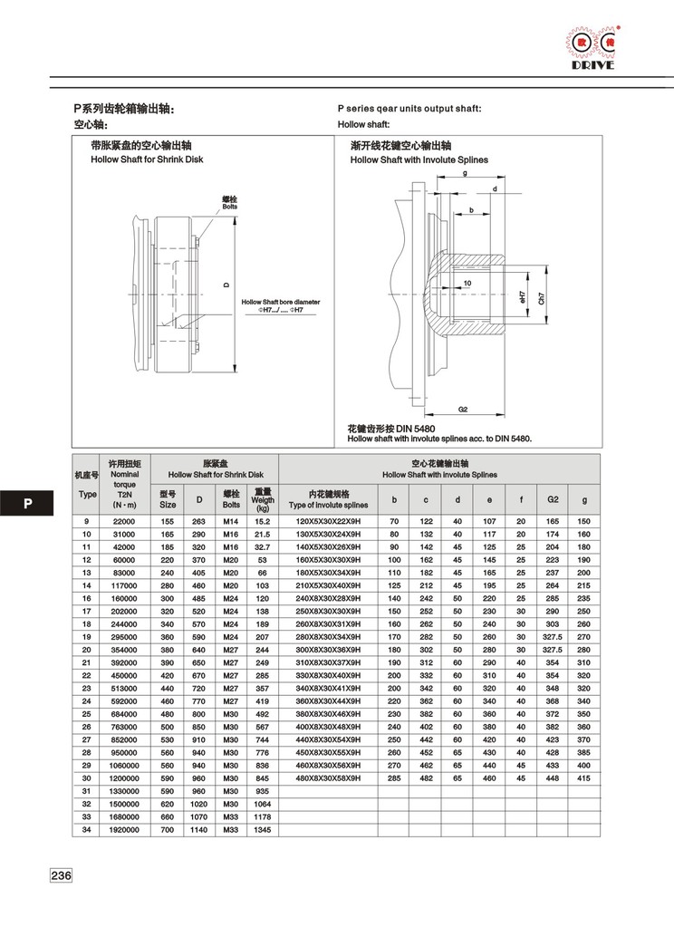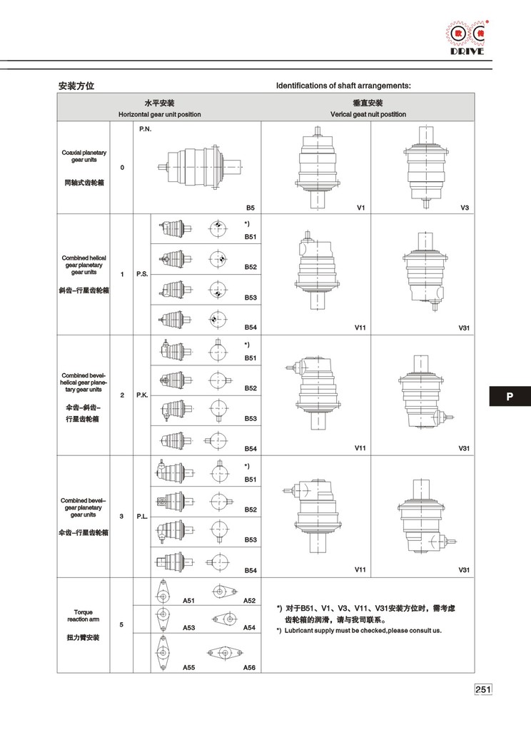 P系列重载行星齿轮减速机P系列行星齿轮减速机采用模块化设计,可根据客户要求进行变化组合,减速机采用渐开线行星齿轮传动,合理利用内、外啮合、功率分流,箱体采用球墨铸铁,大大提高了箱体的钢性及抗震性,齿轮均采用渗碳淬火处理,得到高硬耐磨表面,齿轮热处理后全部磨齿,降低了噪音,提高了整机的效率和使用寿命。因此具有重量轻、体积小、传动比范围大、效率高、运转平稳、噪声低适应性强等特点。 减速机广泛应用于冶金、矿山、起重运输、电力、能源、建筑建材、轻工、交通等工业部门。减 速 比:25~4000r/min(与RX、R、K系列组合可达到更大速比)输出转矩:高至2600000Nm电机功率:0.4-12934kW安装形式:底脚安装、法兰安装、 扭力臂安装。出轴方式:实心轴渐开线花键实心轴渐开线花键空心轴带胀紧盘空心轴