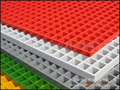 本厂生产的模塑玻璃钢格栅是以一种不饱和聚酯树脂(包括间苯型、邻苯型、乙烯基型和酚醛型、双酚A型等)为基体,以玻璃纤维粗纱为骨架。在金属模具上经过编织模压而成或手糊制作再经加热整体成型,产品外观平整、美观,内在质量高、玻璃纤维含量达30%以(重量百分比)。
