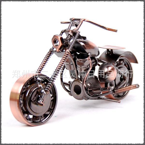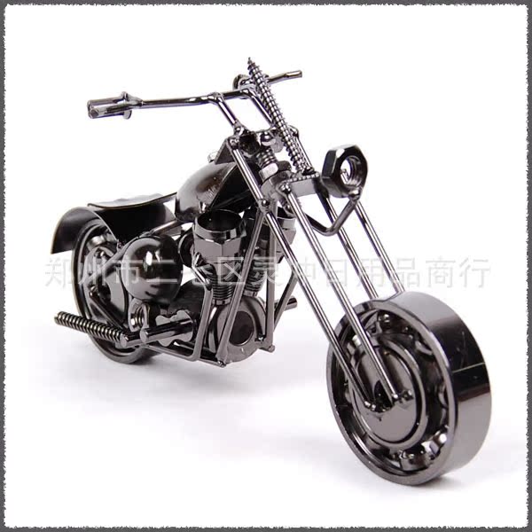 金鑫铁艺中号铁艺摩托车M16。款式多样。颜色两种。价格一样。欢迎订购郑州市二七区灵冲日用商行前身是郑州市金鑫铁艺厂成立于九八年九月,是一家专业从事铁艺礼品设计、生产及销售的综合性私营独资企业。公司从创立到现在因其厂家直销价格低的优势、贴心的服务以及过硬的质量一直受到广大批发商、零售商、淘宝网、拍拍网代理商等的大力支持与信赖。公司拥有完整、科学的质量管理体系.凭诚信、实力和产品质量获得业界的认可。 我们公司生产的老爷车系列产品(包括汽车,火车,消防车、吉普车、铁艺摩托车、铁艺烟灰缸,铁艺人,铁艺铠甲武士。铁艺表,铁艺笔筒等),全部工艺均用金属为材料仿真制作,从零件加工到组装、上色,全部由手工完成,细节丰富,配合仿古的喷绘效果,有很高的观赏和收藏价值,适合家居装饰、业余收藏和礼品赠送。目前已经推出的款式已经达到近千种,仍不断开发新的产品,也可根据用户的要求进行个性定制。 经过多年的发展,凭着良好的信用、优良的服务与众多厂家建立了长期的合作关系。热诚欢迎各界朋友前来参观、考察、洽谈业务。.双层烤漆。形象逼真。家居装饰之精品公司网址http//:yancong12345.cn.alibaba.com//