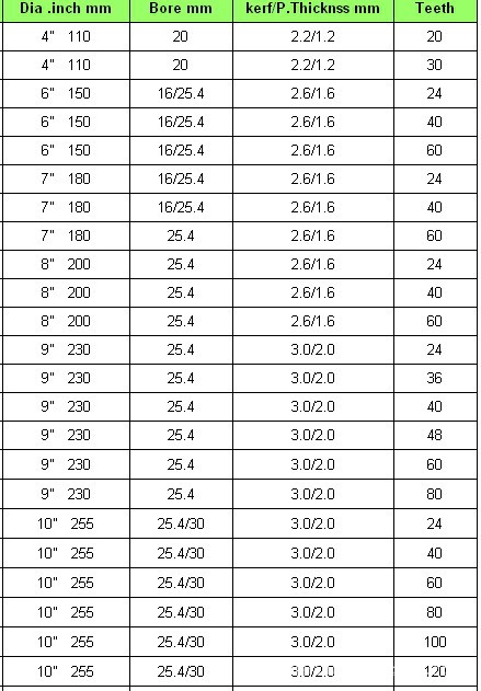 锯片内孔:25.4~30~32mm。