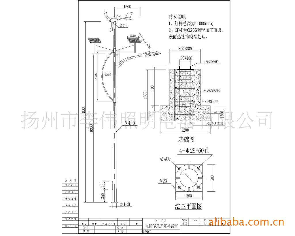 6、防腐:灯杆整体热浸镀锌处理,锌层厚度≥85㎜,使用寿命≥50年。