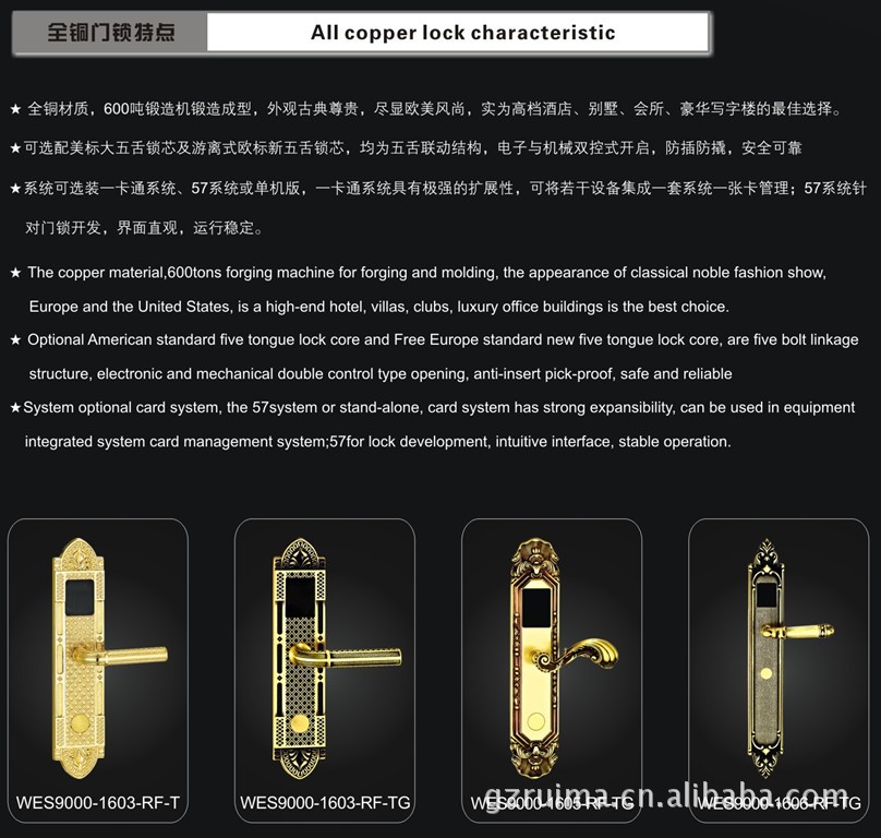 材质:全铜 | 表面处理:封釉 | 锁体:美标大五舌或欧标新五舌 |