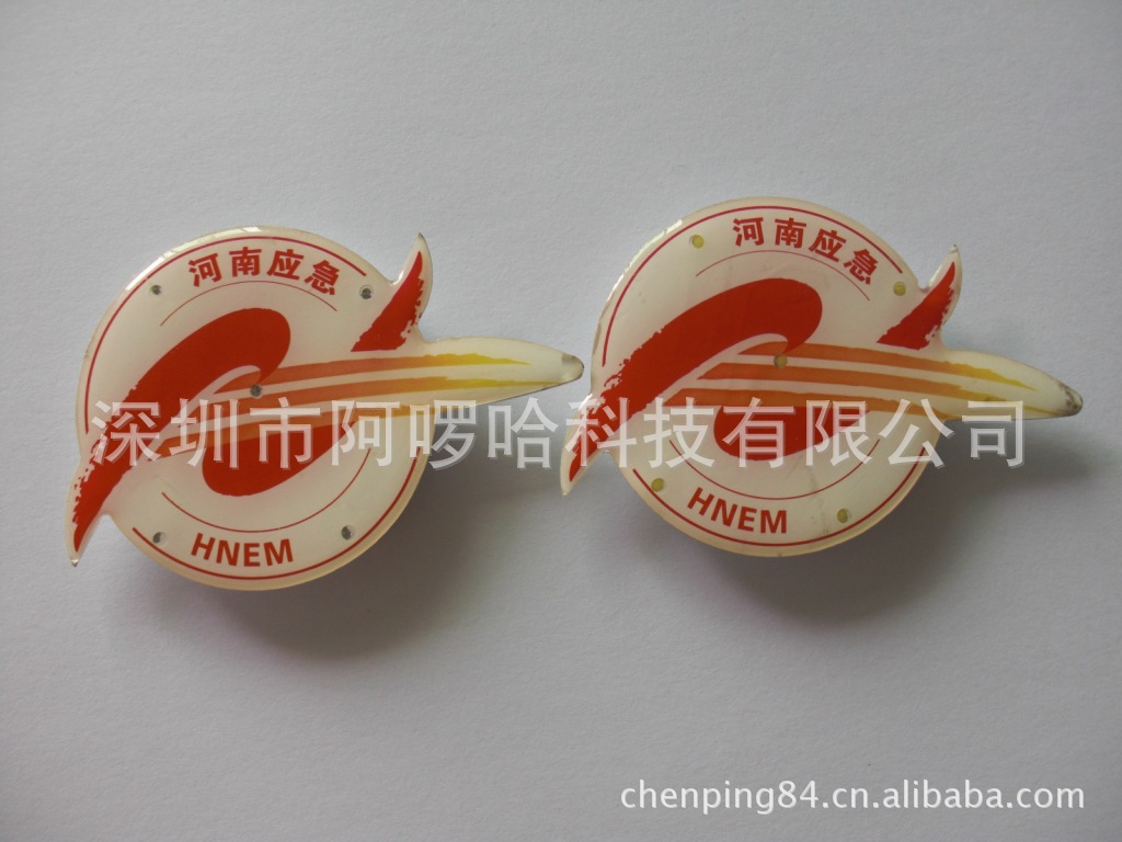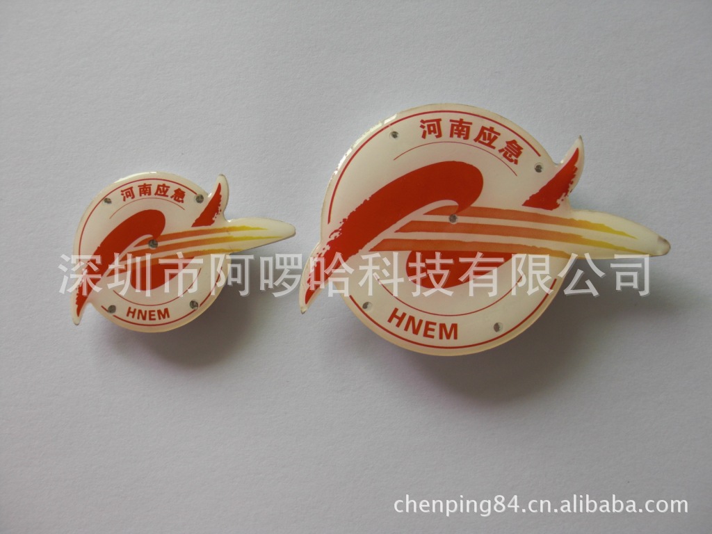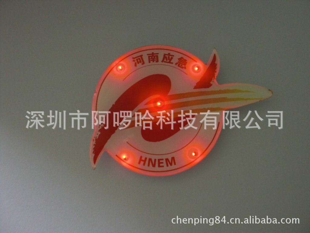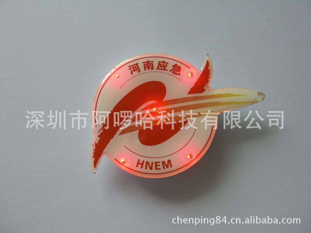 注:我司生产发光胸章多年,有丰富的胸章模板库存,可快速为你提供大货产品,且不用开模,可为您省下模具费。