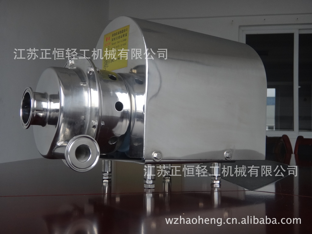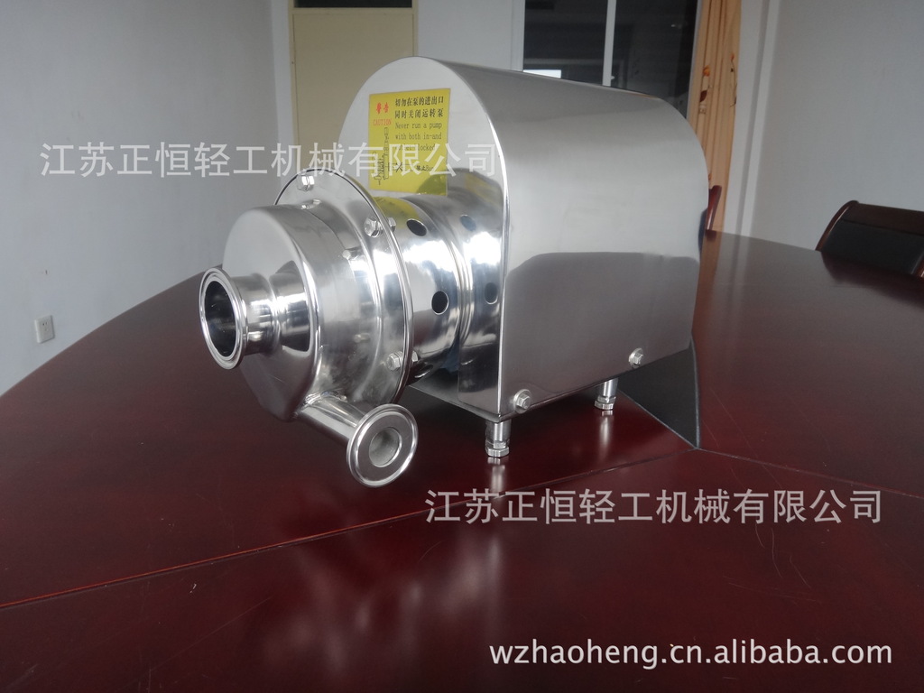 卫生泵又名(饮料泵、奶泵、进料泵),采用优质不锈钢SUS304或SUS316L材料制造,泵体与电机联成整体,采用机械密封装置,并有不锈钢防护罩,具有结构简单、外形美观、体积轻巧、耐腐蚀、操作方便、无需安装基础,便于手提。安装时可根据不同需要把出口管作多方向任意角的调节。