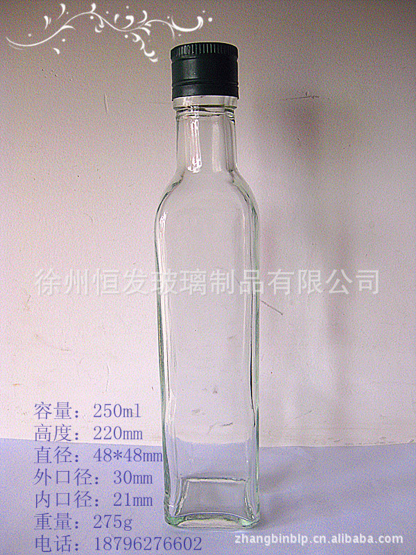 徐州市恒发玻璃制品有限公司,是一家专业生产玻璃瓶包装容器、工艺品玻璃瓶、各类酒瓶、橄榄油瓶、蜂蜜瓶、酱菜瓶、化妆品瓶、麻油瓶、饮料瓶、精油瓶、医药瓶等包装等玻璃瓶制品的现代企业。企业拥有专业模具设计、烤花、刻字、蒙砂喷涂、配套瓶盖全套一条龙的服务生产线。真诚期待与世界各国的您合作。如需了解详情,请登录网址http://www.zhangbinblp.cn.alibaba.com