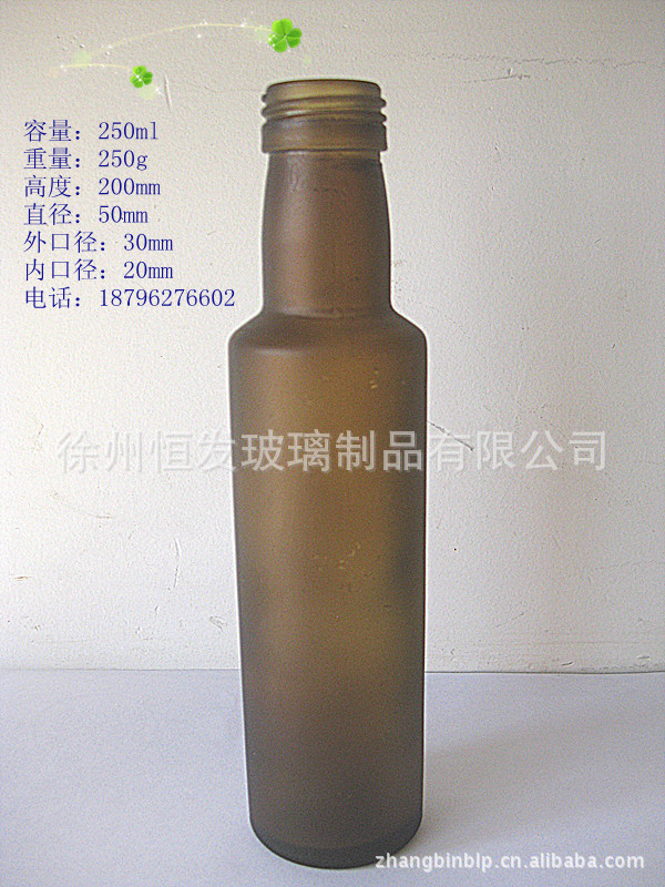 徐州市恒发玻璃制品有限公司,是一家专业生产玻璃瓶包装容器、工艺品玻璃瓶、各类酒瓶、橄榄油瓶、蜂蜜瓶、酱菜瓶、化妆品瓶、麻油瓶、饮料瓶、精油瓶、医药瓶等包装等玻璃瓶制品的现代企业。企业拥有专业模具设计、烤花、刻字、蒙砂喷涂、配套瓶盖全套一条龙的服务生产线。真诚期待与世界各国的您合作。如需了解详情,请登录网址http://www.zhangbinblp.cn.alibaba.com