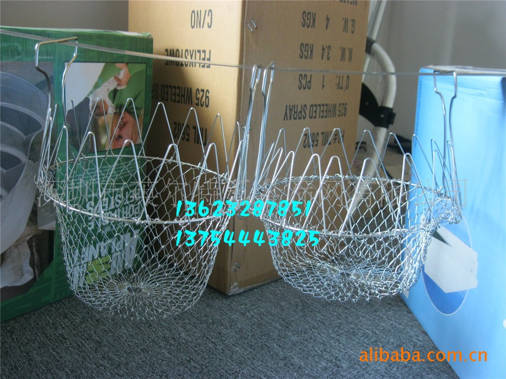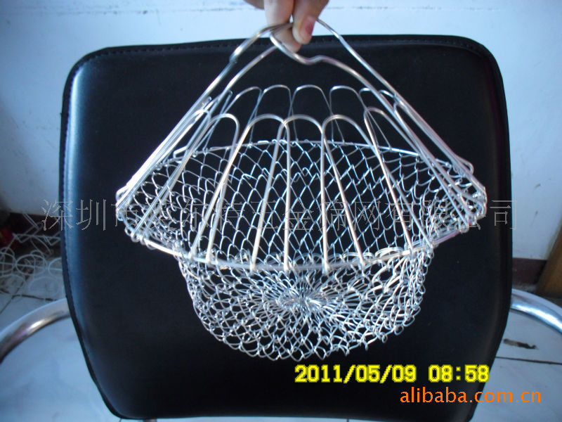 折叠篮、不锈钢折叠篮、厨师篮、沥水篮材料:不锈钢丝、低碳钢丝、铜丝。