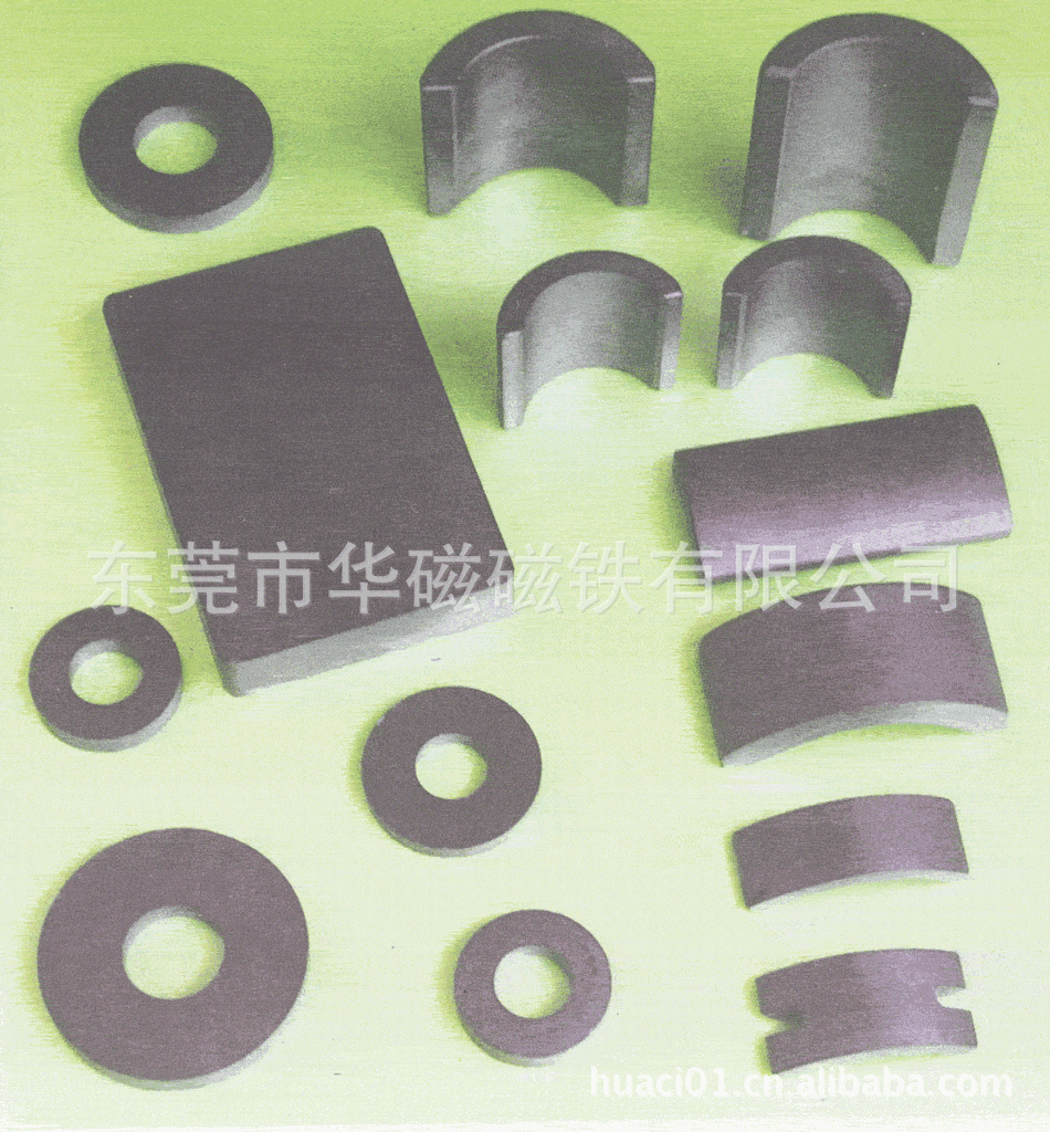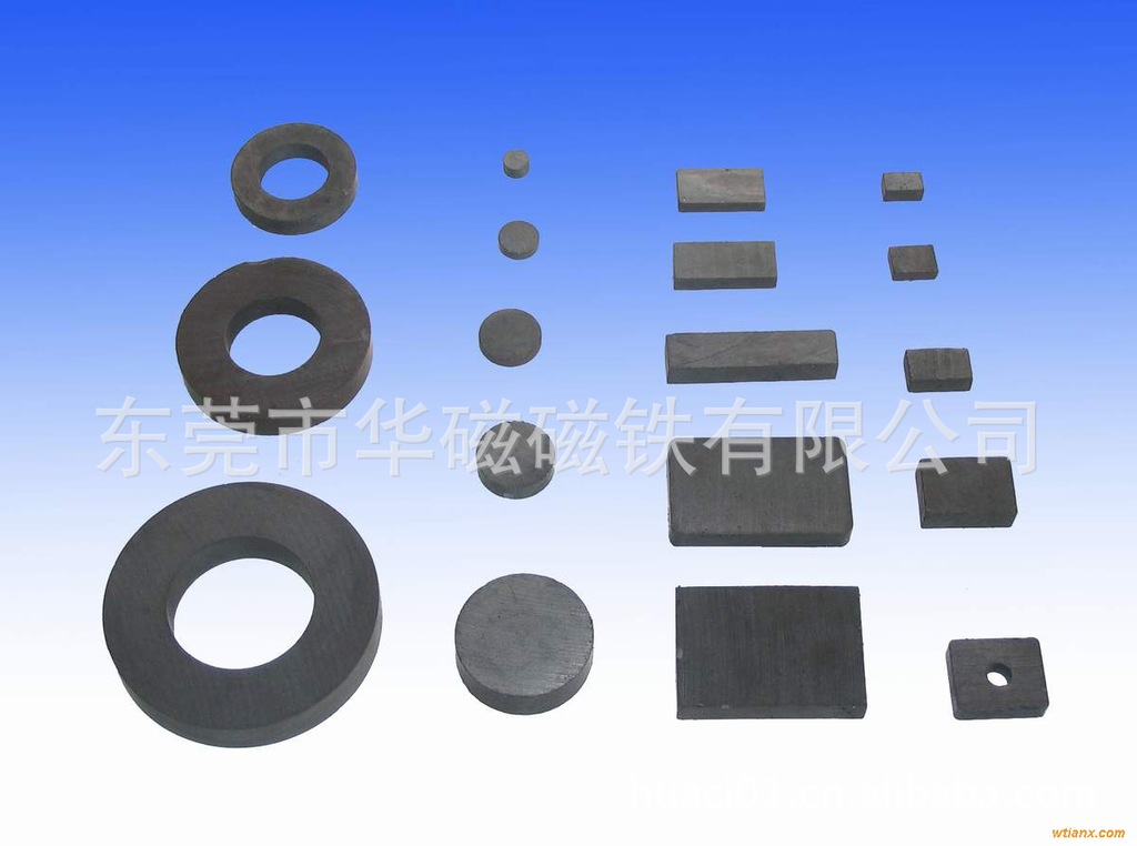 钕铁硼磁铁可生产的性能主要有N33-N52、N30H-N40H、N30M-N40M等不同档次性能的产品,并可根据产品工作环境的要求对其表面可进行电镀或涂覆的处理,如镀锌(彩锌、黑锌、蓝白锌)、镀镍(单层镍、双层镍、镍铜镍)、镀金及涂覆环氧等,可加工形状有方形,圆形,凹形、球形,梯形,面包形等;铁氧体可生产的性能有Y10--Y25--Y30等,并可根据客人要求加成工方形、圆形、面包形,或其它形状;橡胶磁可生产的性能有Y10--Y25--Y30等;磁钮主要有:超薄、加厚、普通厚,表面有压花、光面,另可加工成单撞磁钮或双撞磁钮;磁棒、磁力架主要有普通型与强力型;